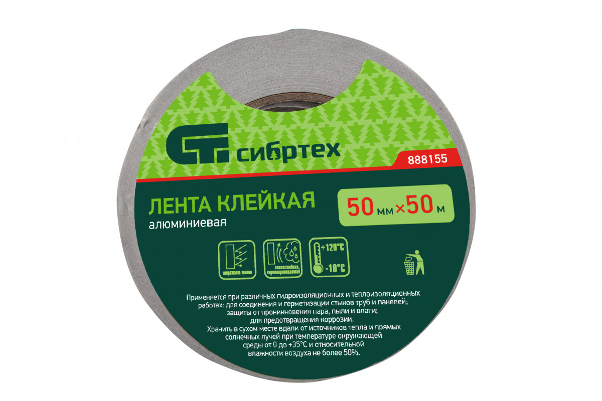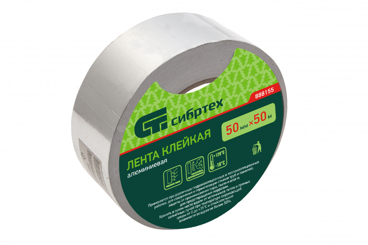 Лента клейкая алюминиевая, 50 мм х 50 м Сибртех