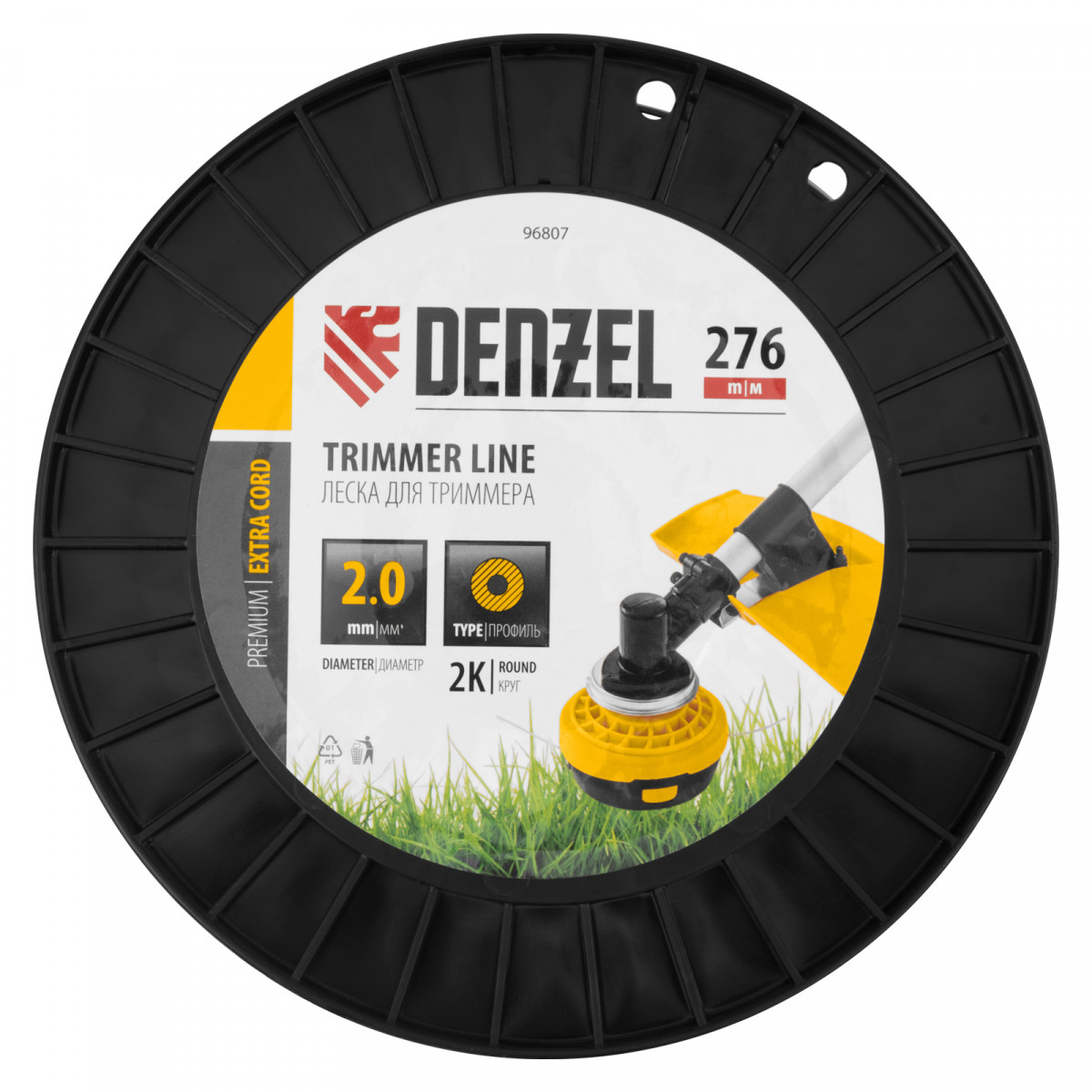 Двухкомпонентная леска для триммера Denzel EXTRA CORD 96807 размером 2,0 мм х 276 м, с круглым сечением, на DIN-катушке, предназначена для работы с бензотриммерами и электрическими триммерами мощностью 1-1,5 кВт. Используется для скашивания густой травы, будет полезна для ухода за дачным участком или придомовой территорией.