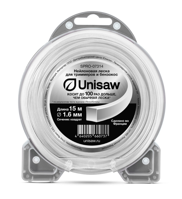 Леска триммерная 1.6мм 15м квадрат Unisaw