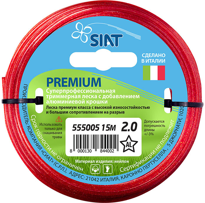 Леска триммерная SIAT PREMIUM Алюминиум D 2,0 мм 15м звезда