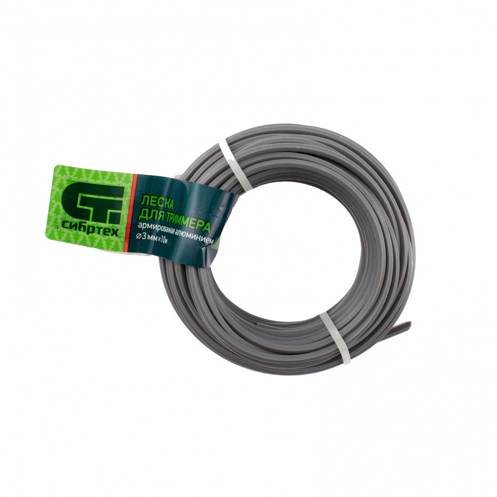 Армированная алюминием леска для триммера Сибртех 961985 с сечением «звезда», диаметром 3 мм и длиной 10 м, предназначена для стрижки крупностеблевых сорняков и бурьяна.