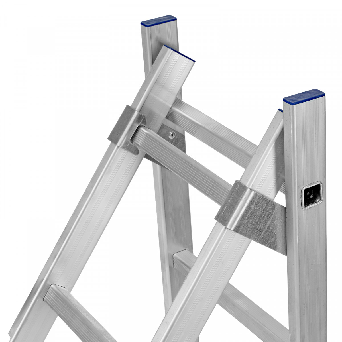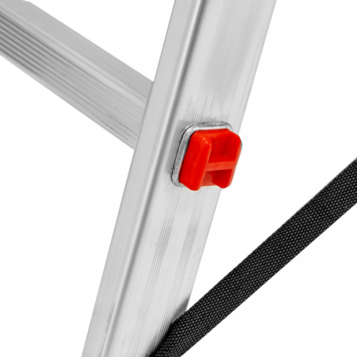 - 3 рабочих положения — стремянка, двухсторонняя стремянка, приставная лестница с одной или двумя секциями.