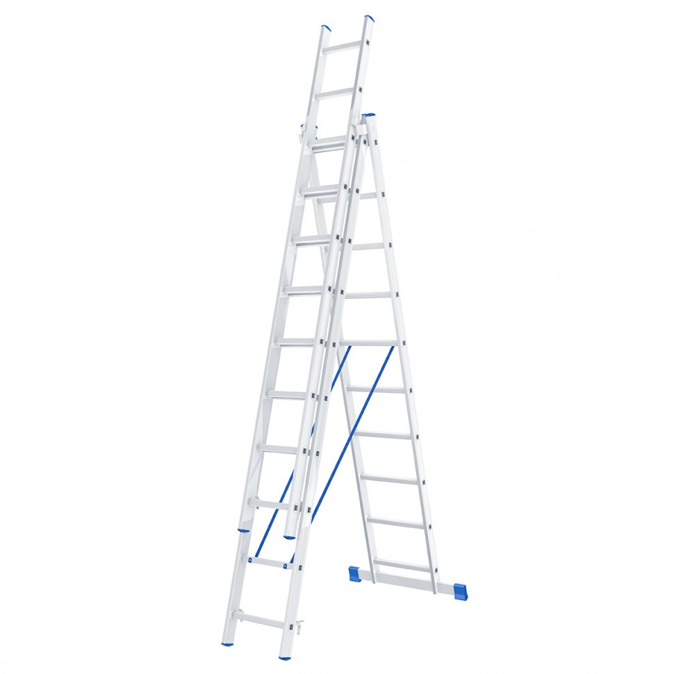 Лестница, 3 х 10 ступеней, алюминиевая, трехсекционная, Сибртех