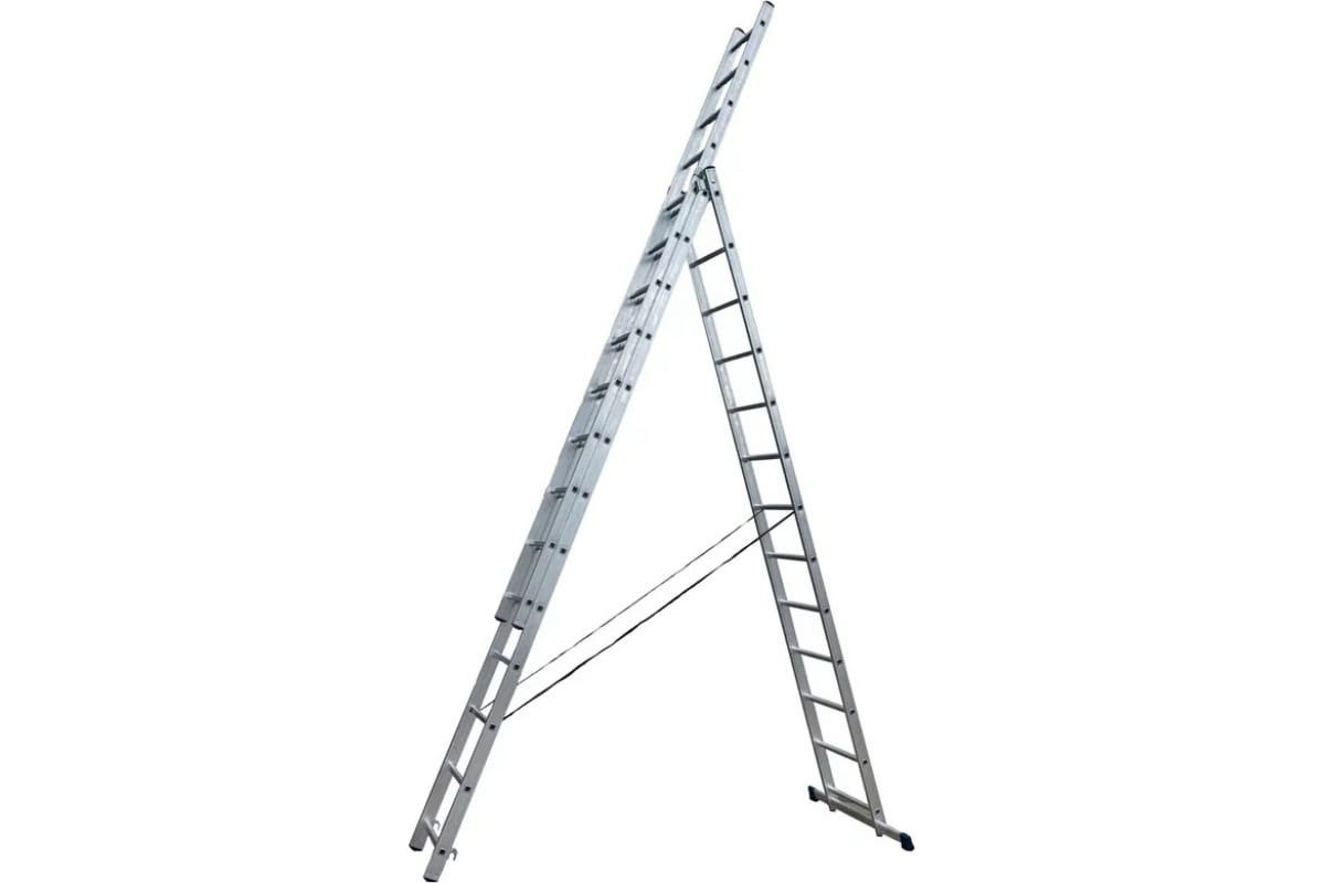 Универсальная трехсекционная лестница используется при выполнении различных работ на большой высоте.