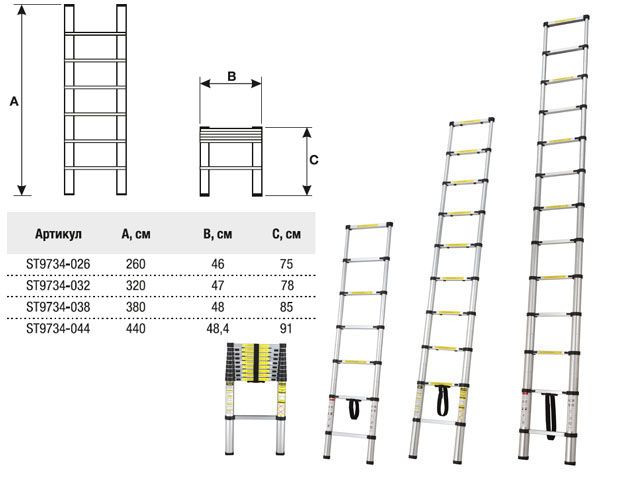 Надежная и прочная телескопическая конструкция, коррозионная стойкость, компактные размеры в сложенном виде