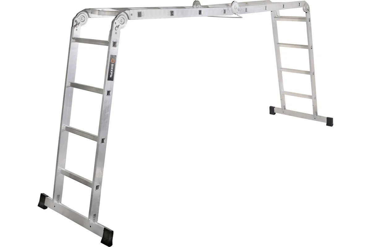 Четырехсекционная алюминиевая многофункциональная лестница-трансформер ВИХРЬ ЛТА 4х4 - это удобный и надежный инструмент для работы на высоте. Она состоит из четырех секций, которые можно свободно раскладывать и складывать в зависимости от задачи. Лестница-трансформер может использоваться как: