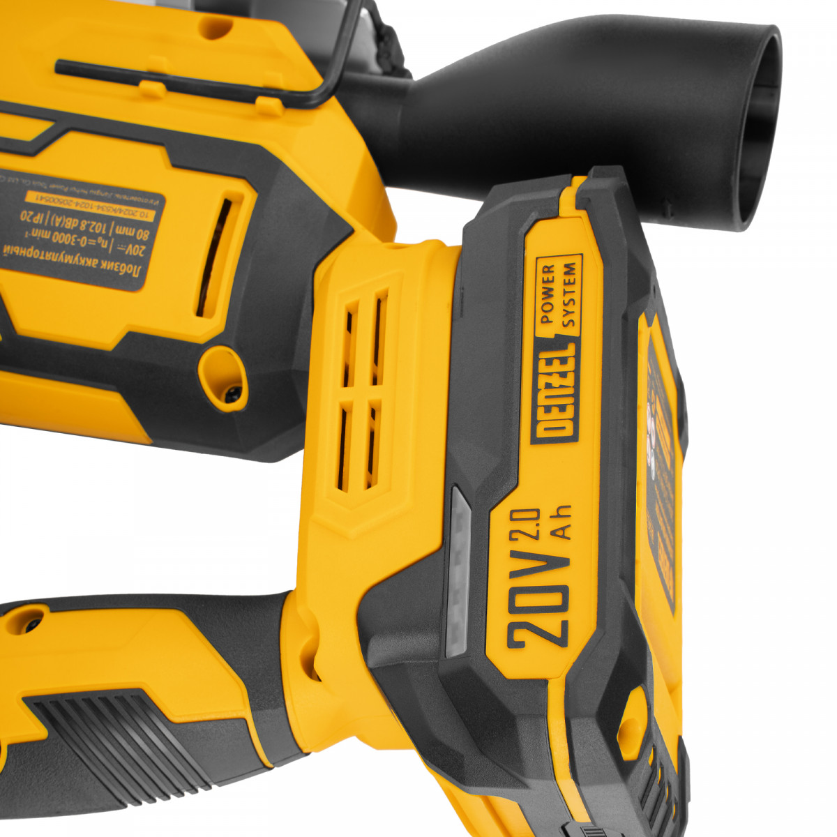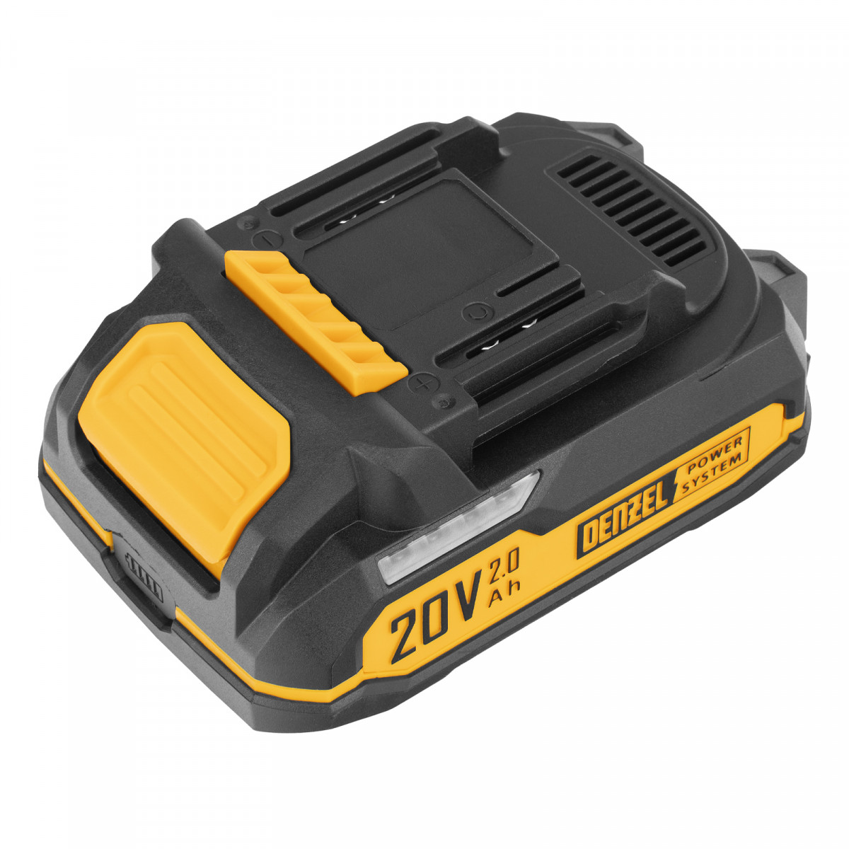 • Универсальный источник питания — аккумулятор Li-Ion емкостью 2 А·ч совместим со всеми инструментами единой платформы Denzel Power System 20V.