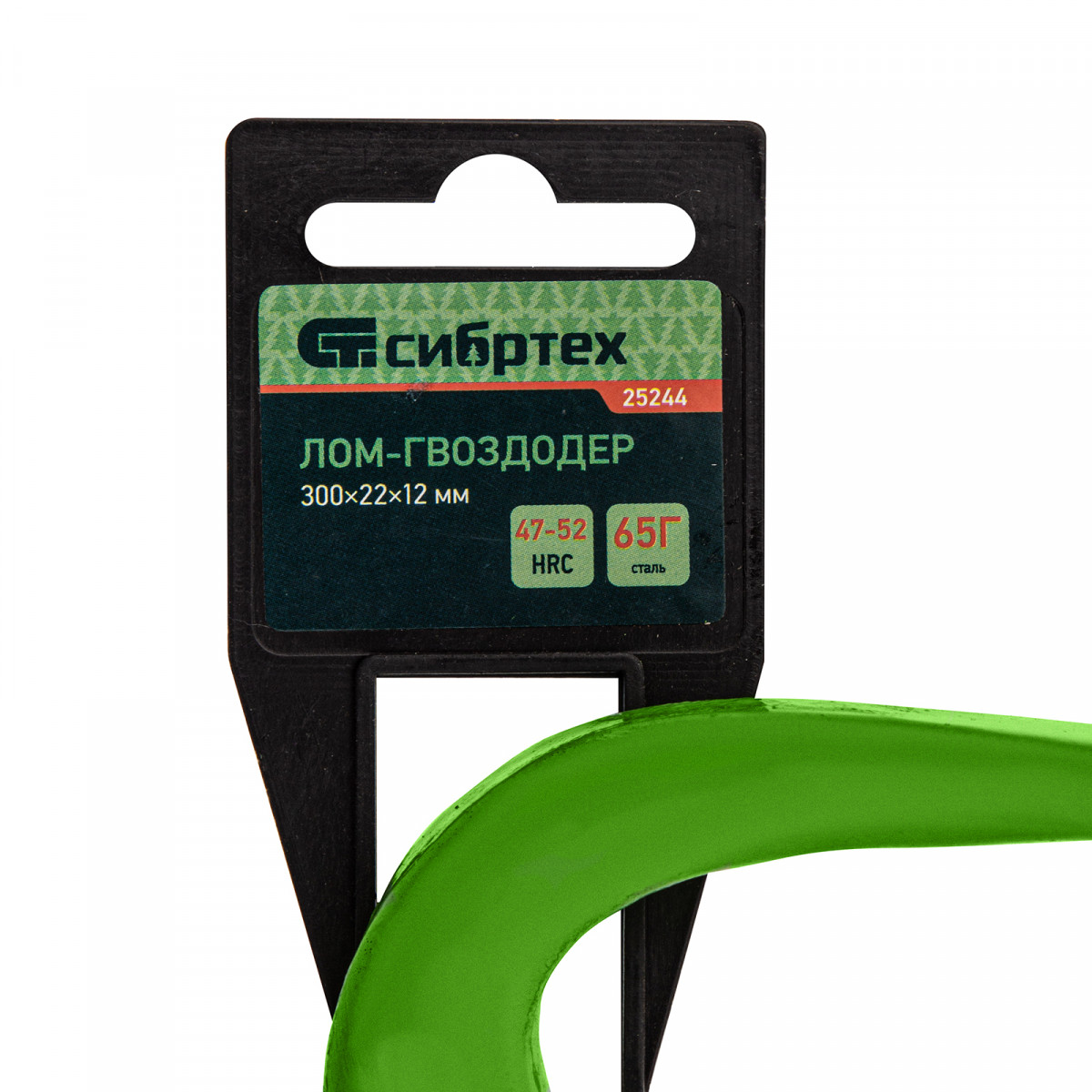 Лом-гвоздодер Сибртех 25244, 300 х 22 х 12 мм, позволяет удалять гвозди, а также срывать доски с пола, разбирать ящики, демонтировать заборы, вагонку со стен или шифер с крыши. Может служить рычагом для поднимания грузов, поскольку прямоугольно-овальный профиль значительно усиливает его на момент излома. Инструмент подходит для профессионального и бытового применения.