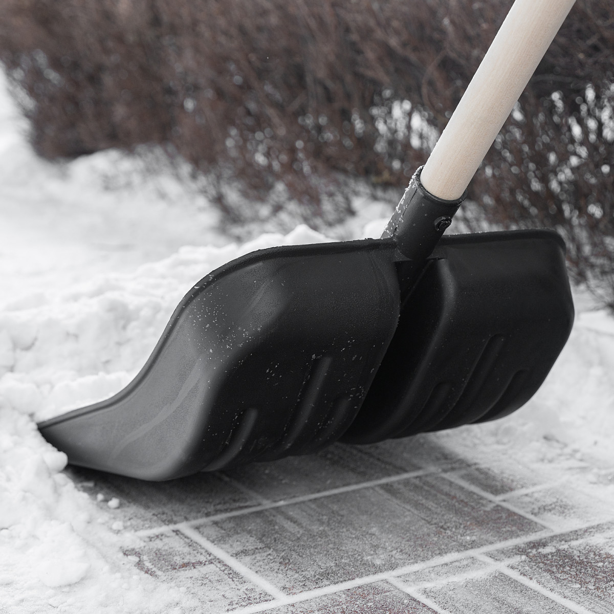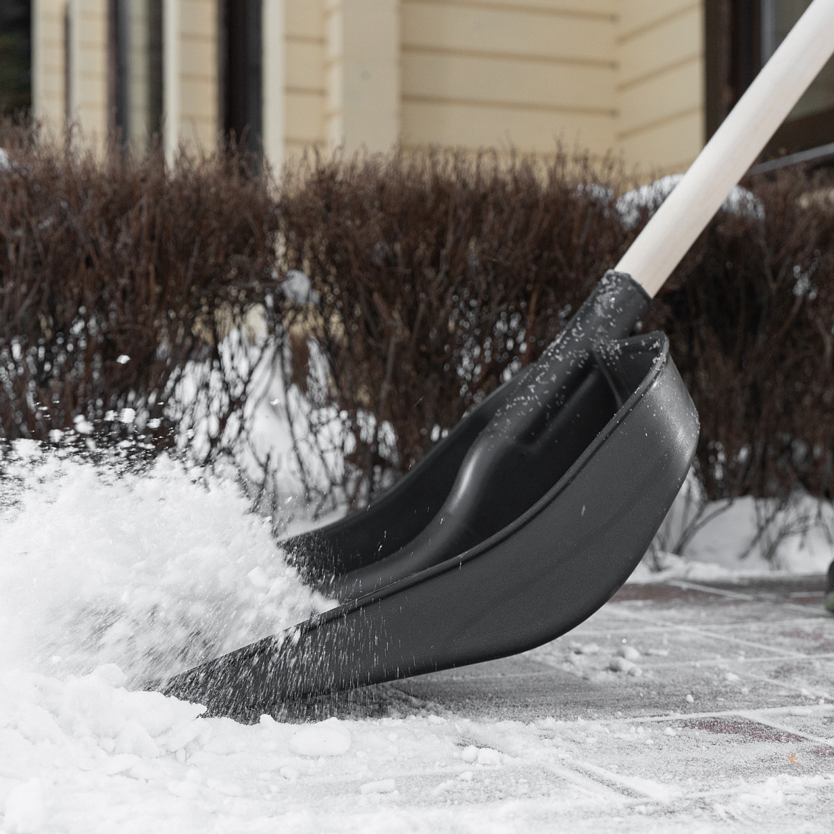 • Эффективная работа — углубленный ковш с бортиками вмещает много снега, защитная накладка из алюминиевого сплава предотвращает износ кромки и облегчает очистку слежавшегося снега и наста.