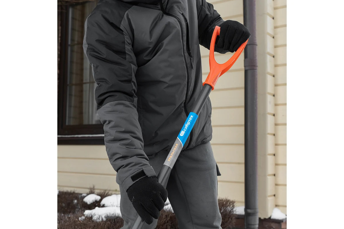 Пластиковая лопата Сибртех 61666 размером 400 х 405 х 1380 мм, со стальным черенком, используется для уборки снега на занесенных дорожках, тротуарах, подъездных путях. Вместительный усиленный ковш с высокими бортиками позволяет быстро справиться с работой. Преимущества: - Надежность — рабочая плоскость, усиленная ребрами жесткости, выдерживает повышенные нагрузки без риска излома. - Высокий ресурс — ковш из морозостойкого полипропилена сохраняет рабочие свойства при температуре до -30 °C. - Устойчивость к истиранию — кромка ковша защищена алюминиевой окантовкой, которая легко проникает в плотный снег и наст. - Защита от механических воздействий и коррозии — алюминиевая накладка покрыта порошковой эмалью.