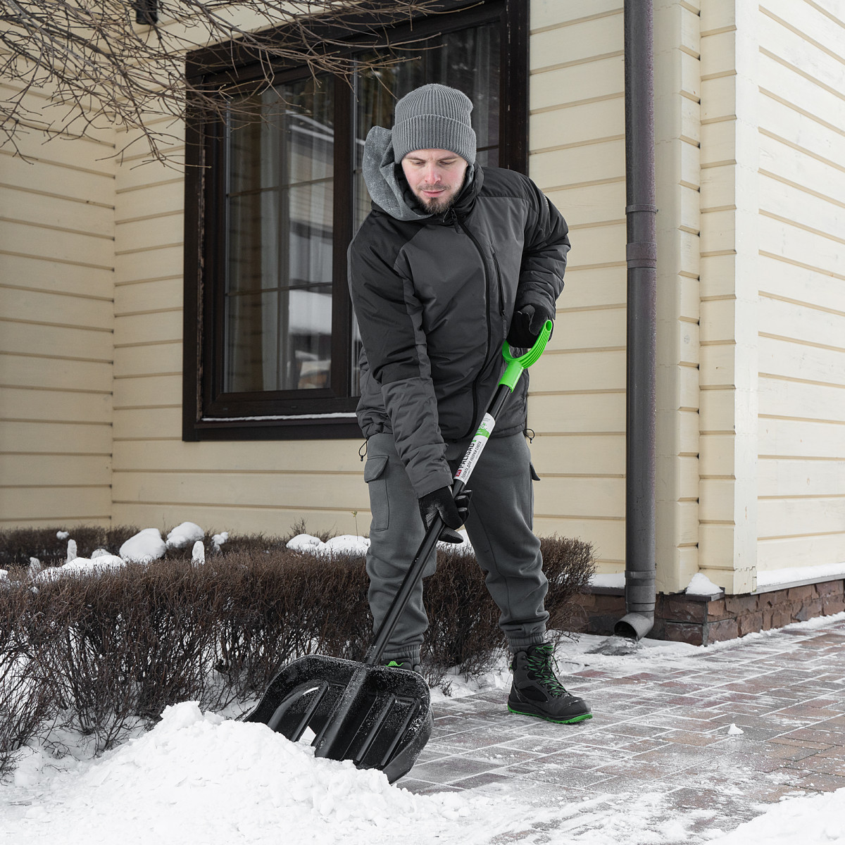 Лопата Palisad BASE 61644 размером 460 x 400 x 1370 мм, с ковшом из поликарбоната и стальным черенком, предназначена для уборки снега. Углубленный ковш вмещает большое количество снега, что значительно ускоряет и упрощает работу. Лопата позволяет быстро и эффективно расчистить садовую дорожку, тротуар, площадку перед гаражом и крыльцом и т.д. Преимущества: - Долговечность — ковш выполнен из ударопрочного и морозостойкого поликарбоната. - Надежность — ковш усилен ребрами жесткости, прочный стальной черенок выдерживает изгибающие нагрузки без риска поломки. - Комфортная работа — дополнительная рукоятка обеспечивает удобный хват, что особенно важно во время длительной работы.