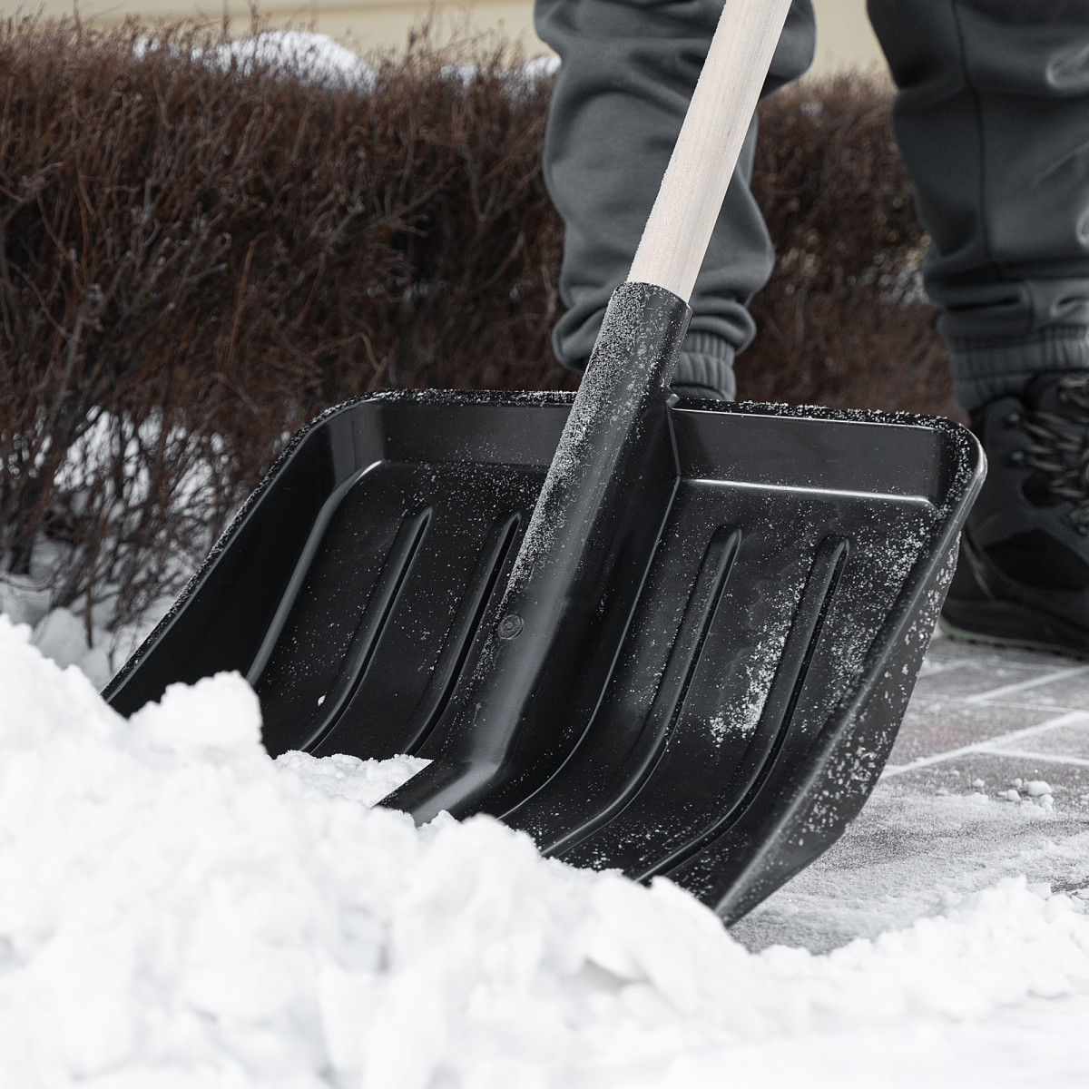 Лопата для уборки снега, полипропилен, 405х410х1470 мм, деревянный черенок