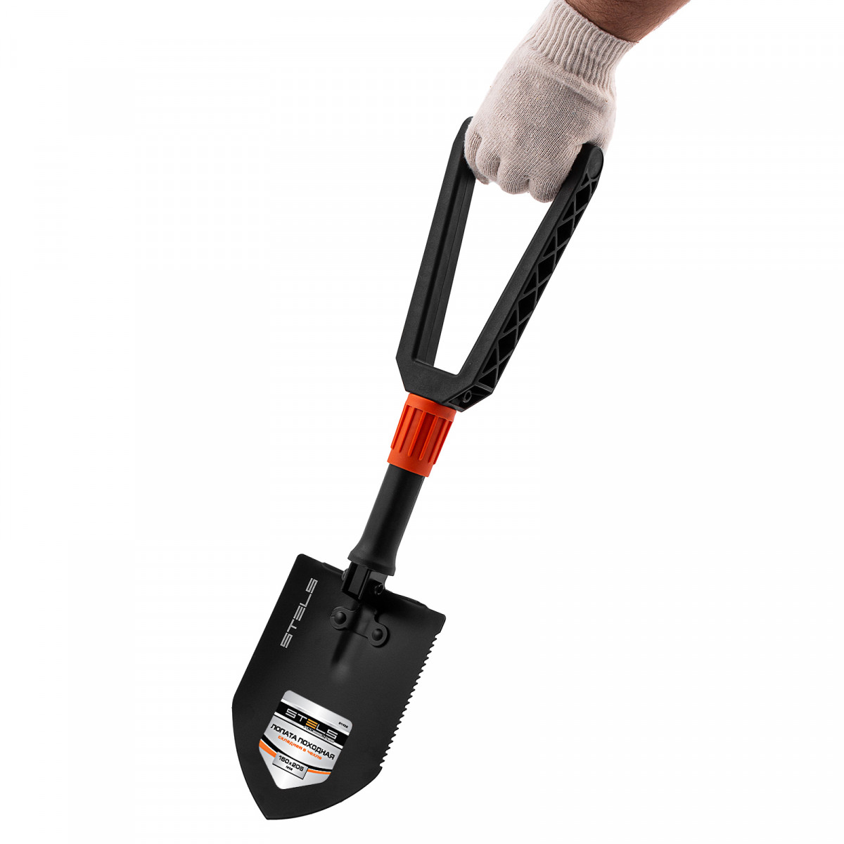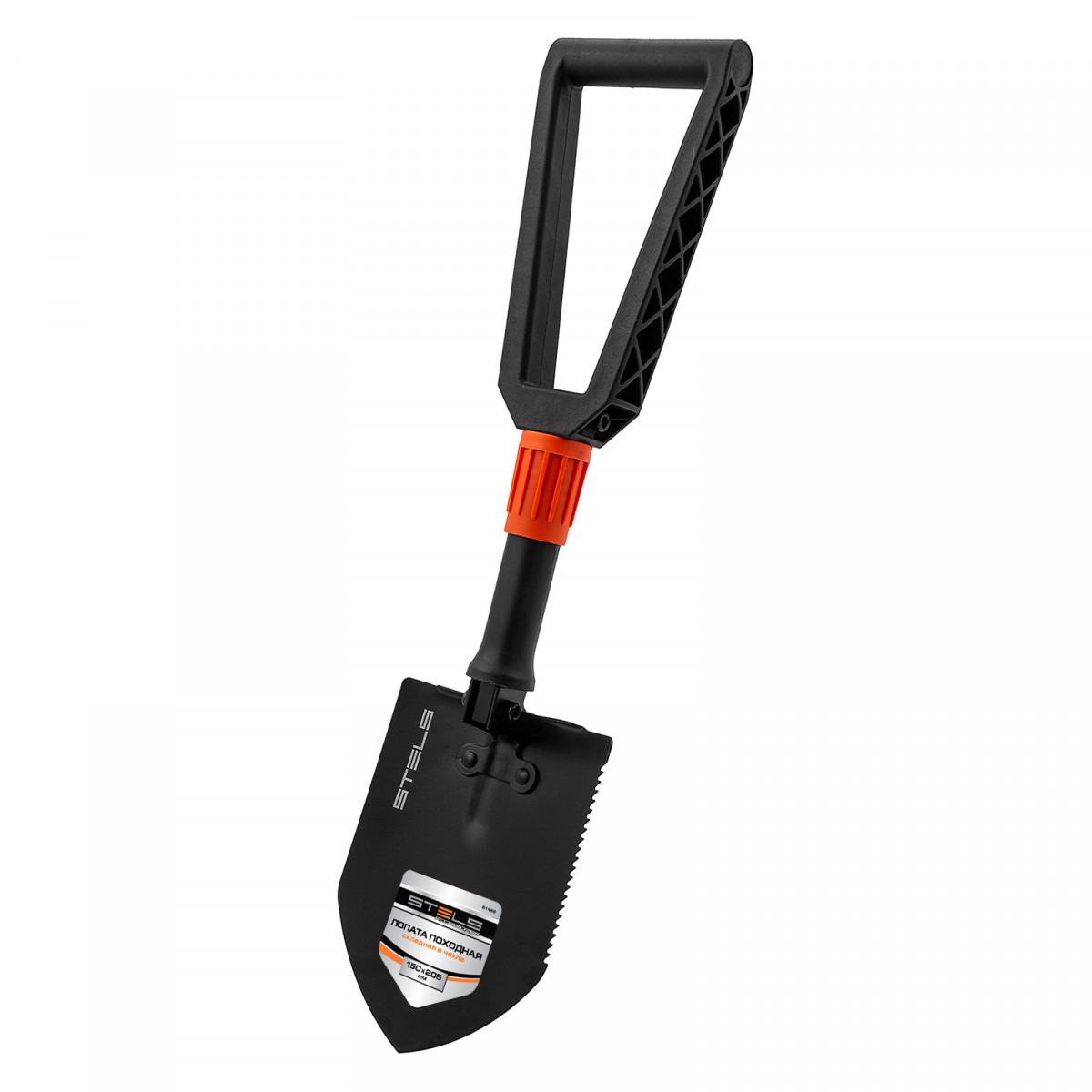Складная походная лопата Stels 61462 с пластиковой рукояткой, 150 х 205 х 253-590 мм, в чехле, находит широкое применение: она пригодится садоводам, автомобилистам и туристам при необходимости проведения земляных работ. А благодаря складной конструкции возможно использование в качестве мотыги. Лопата легко проникает в землю благодаря закругленному краю верхней кромки рабочего полотна.