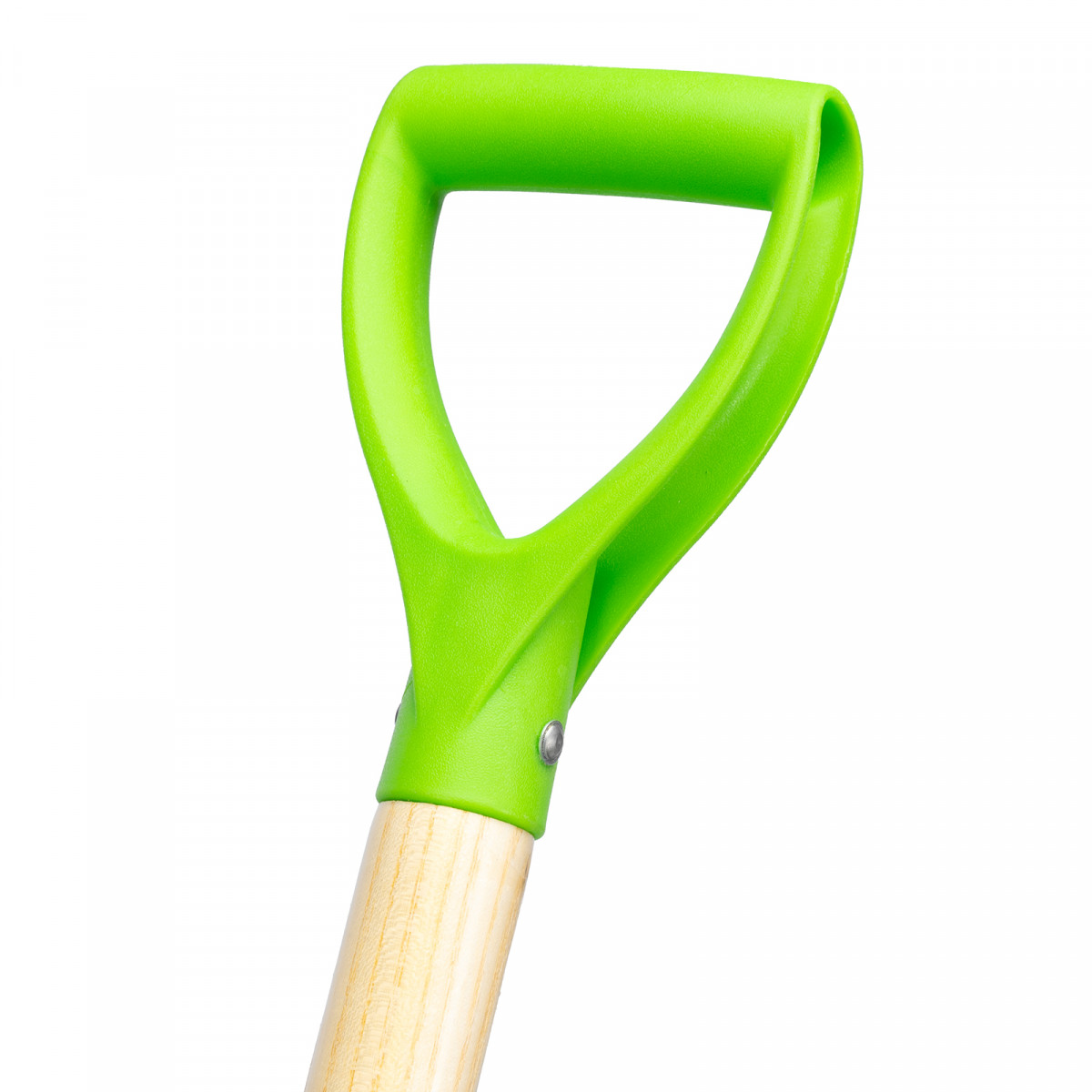 Деревянный черенок с дополнительной рукояткой обеспечивает надежный хват двумя руками.