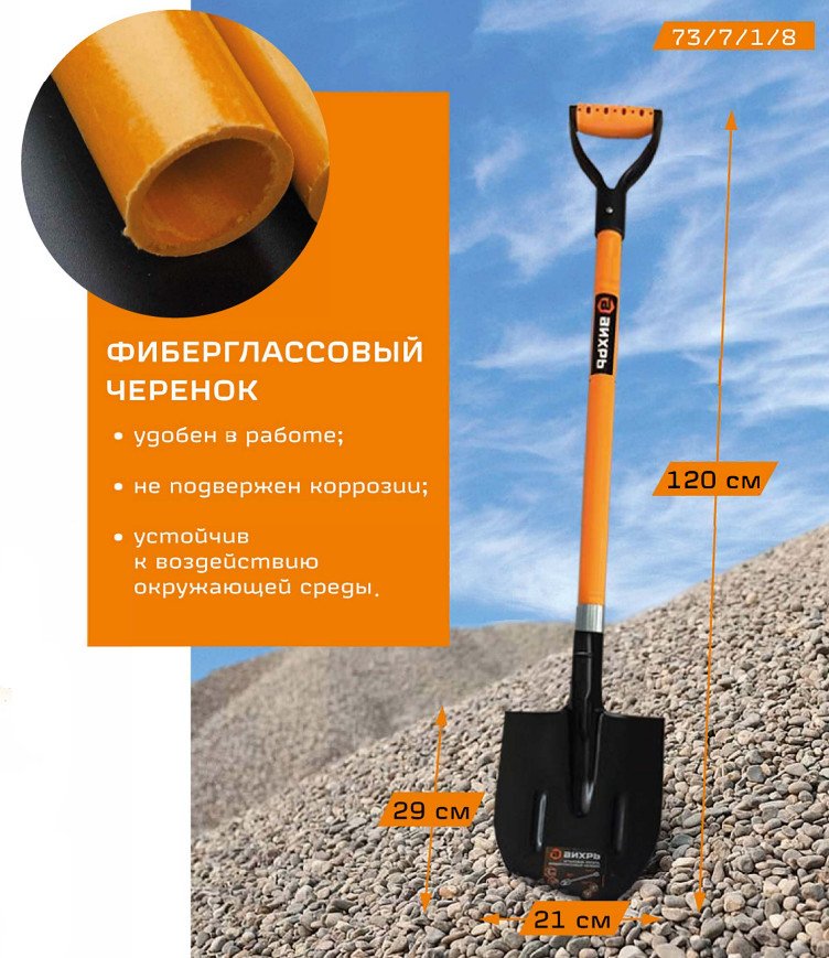 Лопата штыковая фиберглассовый черенок Вихрь используется для обработки почвы или при выполнении строительных работ.