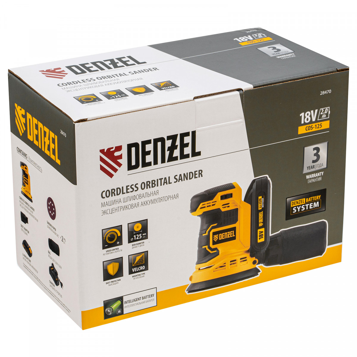 Машина шлифовальная эксцентриковая аккумуляторная COS-125, 18В Li-Ion Denzel