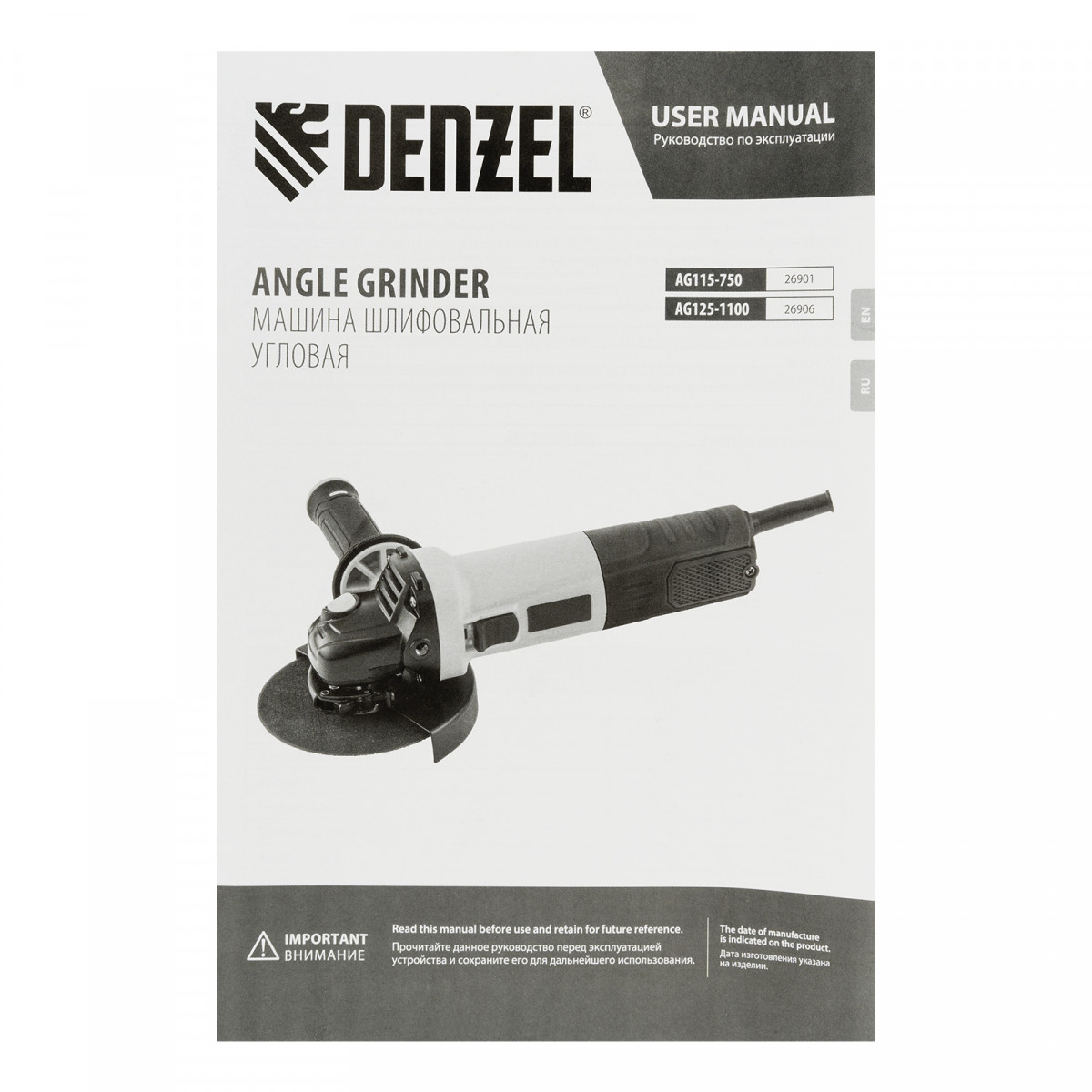 Машина шлифовальная угловая AG115-750, 750 Вт, 115 мм, 11000 об/мин Denzel