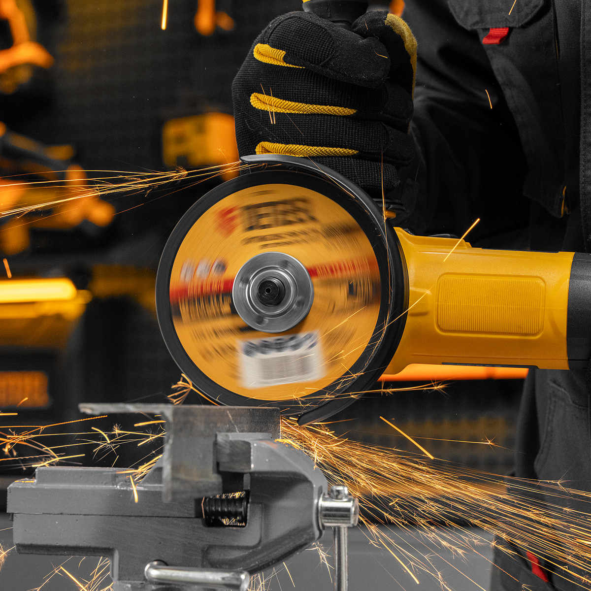 Угловая шлифовальная машина Denzel AG125-1500 26907 мощностью 1500 Вт совместима с оснасткой диаметром 125 мм, система электронной регулировки позволяет устанавливать оптимальную частоту вращения шпинделя в диапазоне 3000-11000 об/мин. Инструмент используется для резки и шлифовки различных материалов, а также при выполнении зачистных работ.