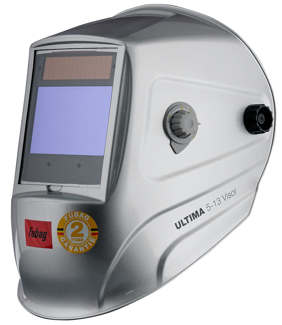 Маска сварщика FUBAG Хамелеон ULTIMA 5-13  используется во время сварки для защиты лица, головы, горла и глаз от ультрафиолетового излучения, резко-яркого света и брызг расплавленного металла. Оснащена автоматическим светофильтром. В обычном состоянии, степень затемнения – 4 DIN. В момент начала процесса сварки автоматический светофильтр мгновенно затемняется до необходимого значения, которое регулируется в пределах 5-9/9-13 DIN. Время переключения — 0.04 мс (0,00004 с). Маска обеспечивает широкий угол обзора для комфортной работы. Рекомендуемая температура эксплуатации от -5 до +55°С. Изготовлена из ударопрочного полиамида. Питание маски обеспечивают солнечная батарея и сменный аккумулятор. Имеет четыре оптических сенсора. Регулировка степени затемнения — внешняя. Регулировка чувствительности — внутренняя. Маску можно использовать при сварке методом TIG.
