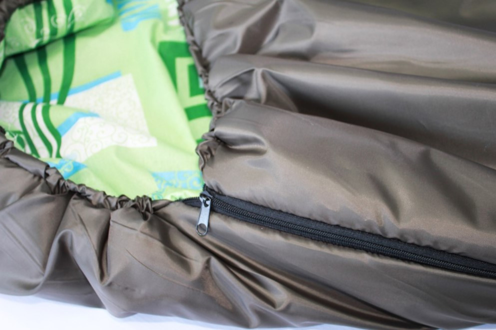 Спальный мешок с капюшоном, на молнии, расстегивается одеялом. Ширина в застегнутом состоянии 90 см.