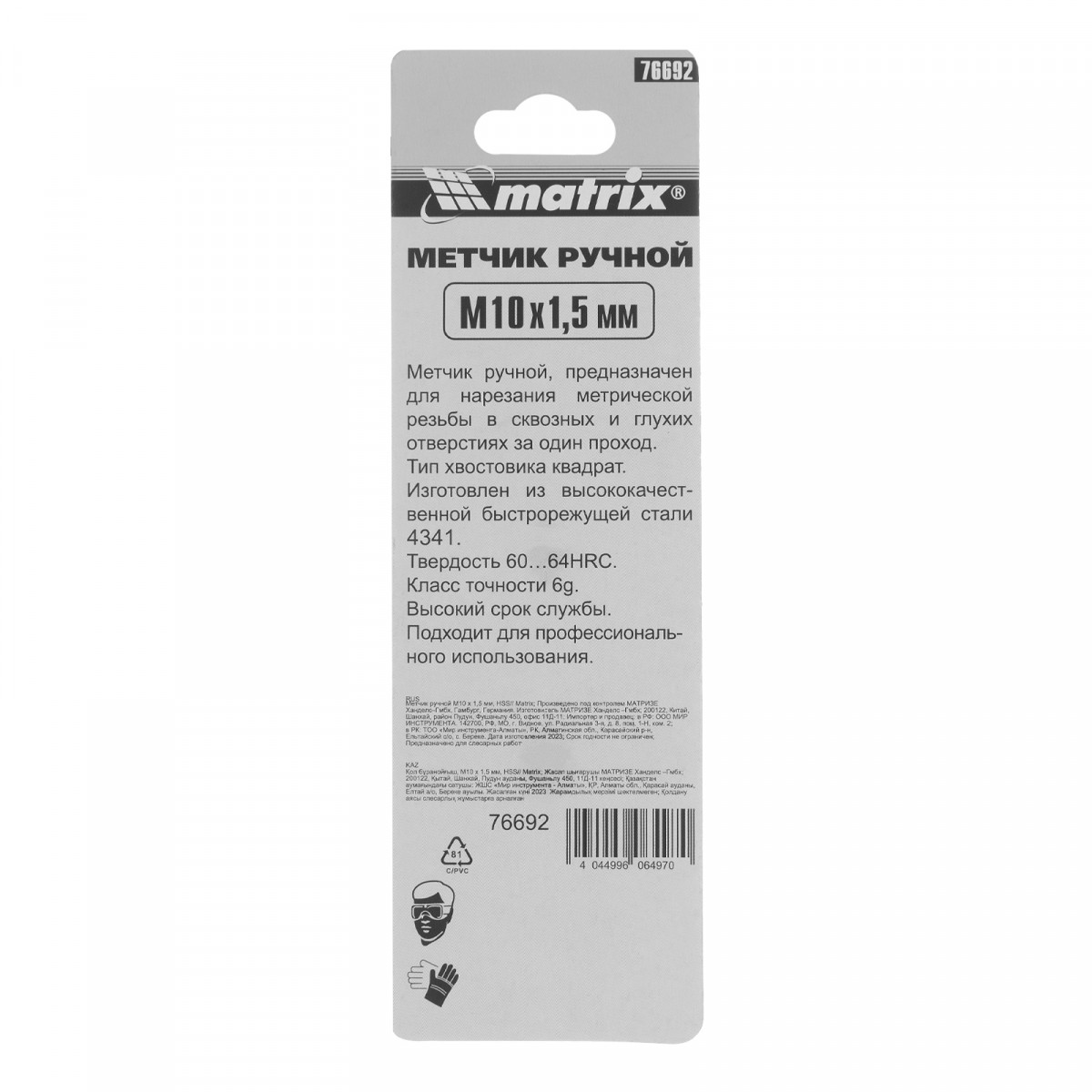 Метчик ручной М10 х 1.5 мм, Р6М5 Matrix