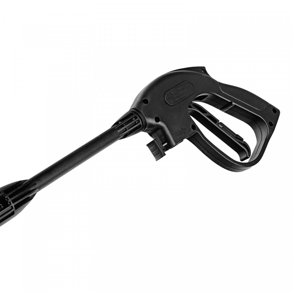 • Защита от случайного пуска — перед началом работы необходимо разблокировать рычаг моечного пистолета.