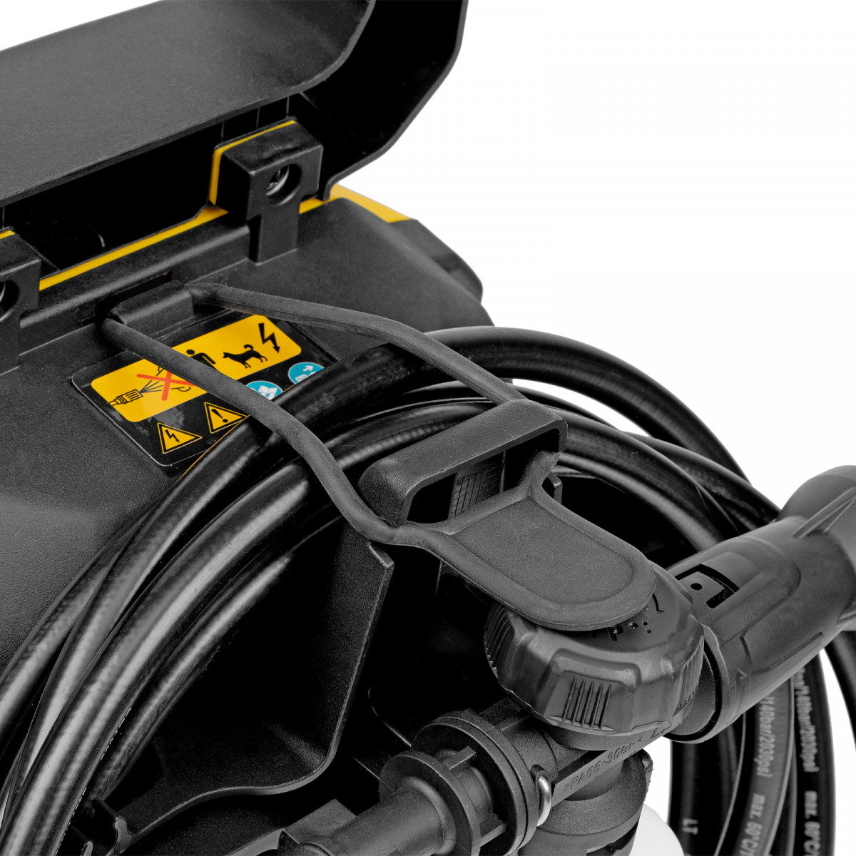 • Безопасность — перед началом работы необходимо разблокировать рычаг моечного пистолета для предотвращения случайного запуска.