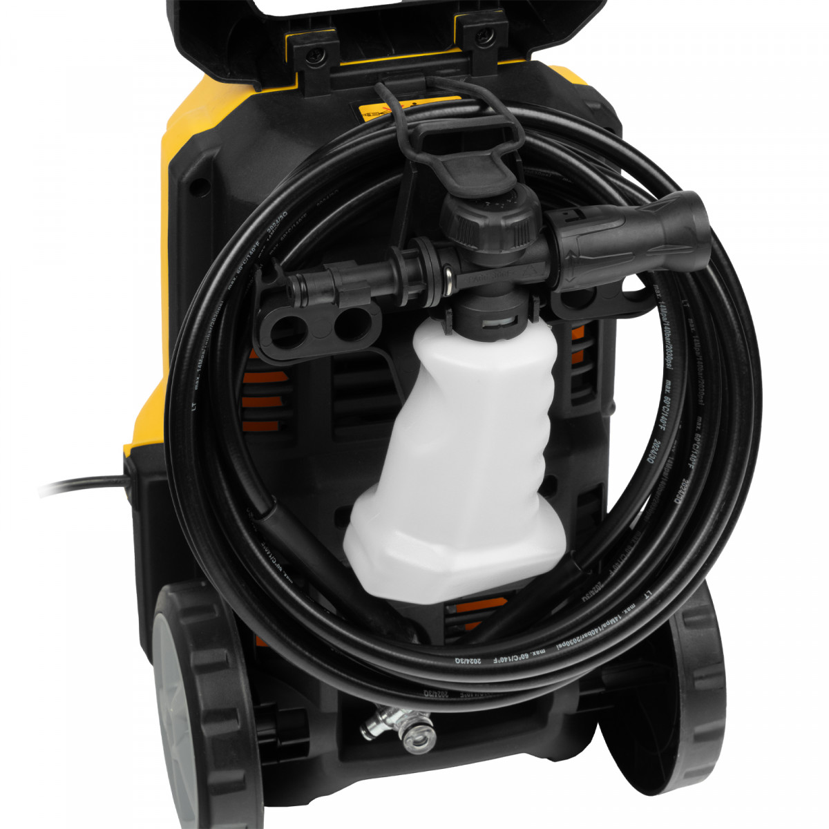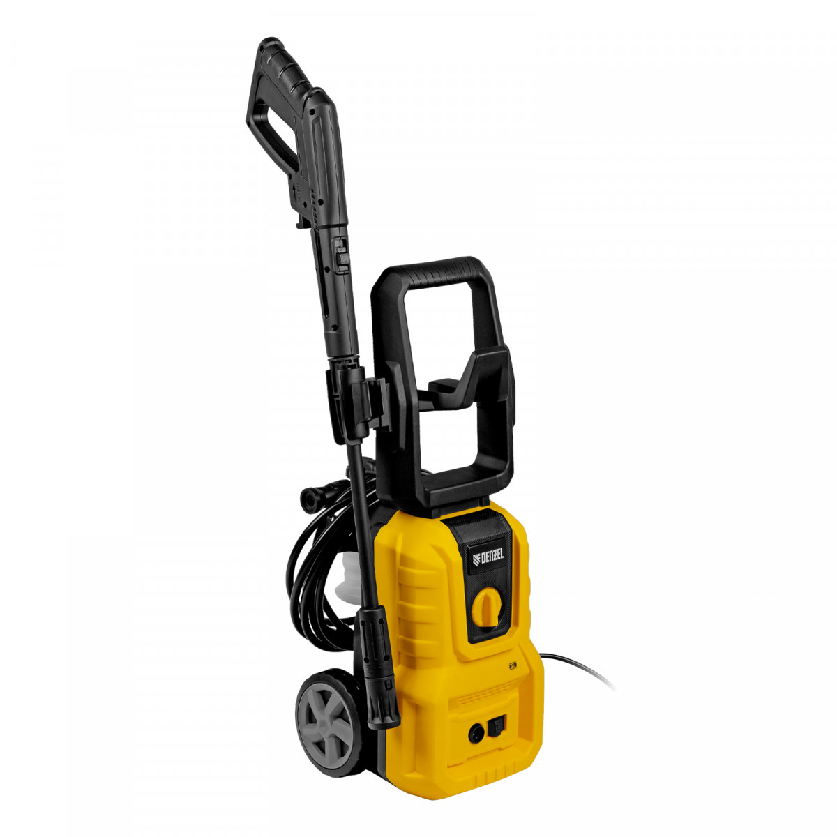 длина кабеля и шланга высокого давления составляет 5 м, что позволяет свободно передвигаться по участку.