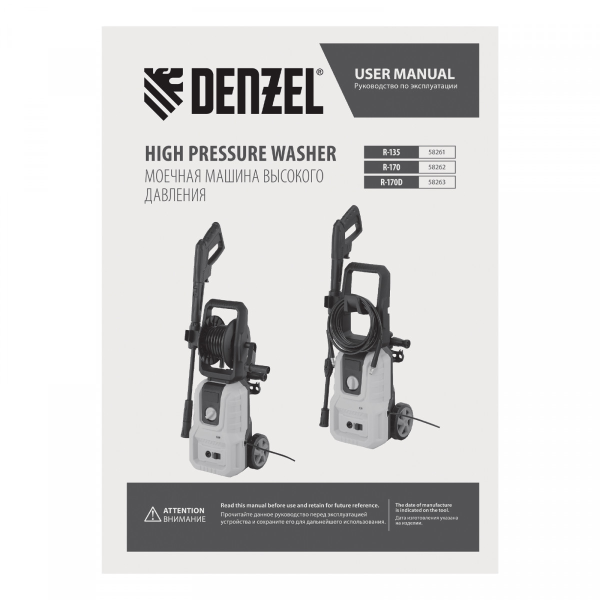 Моечная машина высокого давления R-170, 1800 Вт, 170 бар, 380 л/ч// Denzel