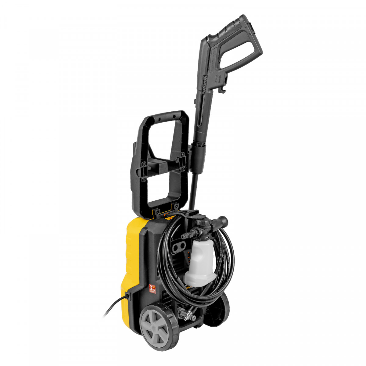 Мобильность — благодаря транспортировочной рукоятке и колесам моечную машину удобно перемещать.|Гарантия 3 года — высокое качество техники подтверждено производителем.