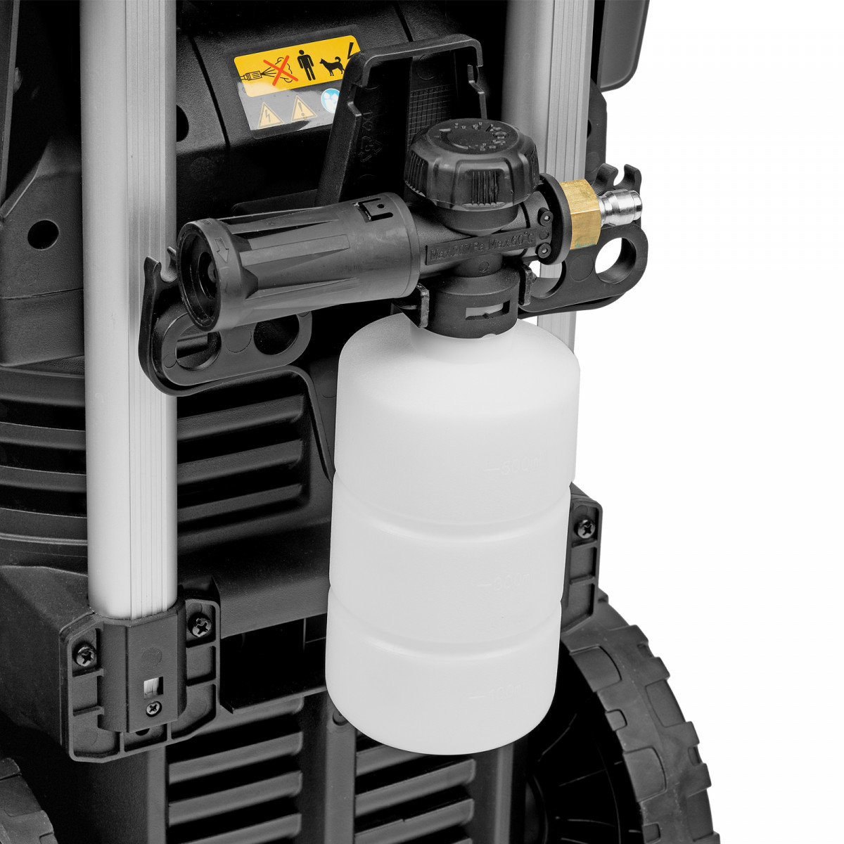 • Максимально эффективное очищение — к мойке прилагается внешний пенокомплект с функцией улучшенного пенообразования, быстросъемное крепление позволяет устанавливать его на пистолет одним движением.