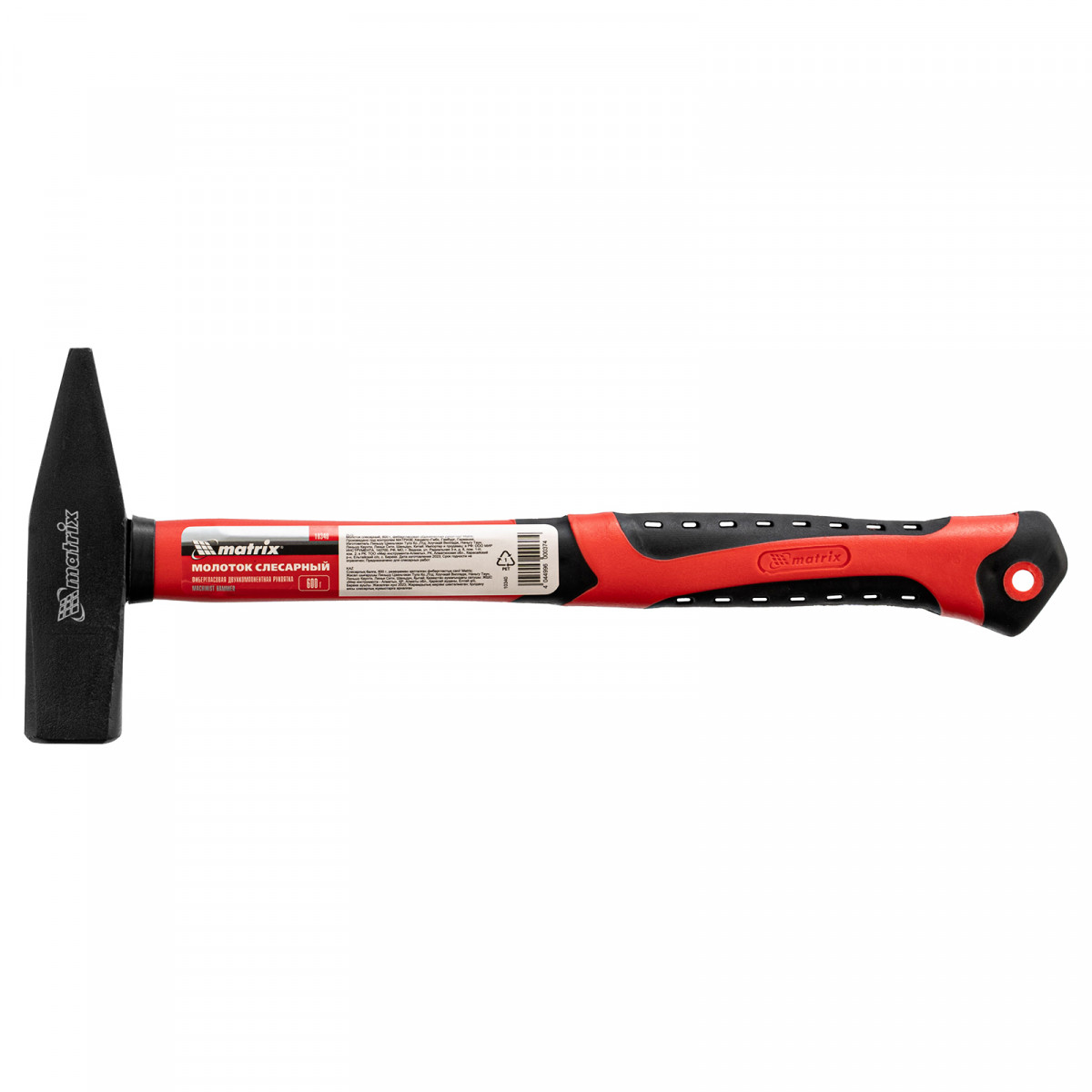 Молоток слесарный, 600 г, фибергласовая обрезиненная рукоятка Matrix
