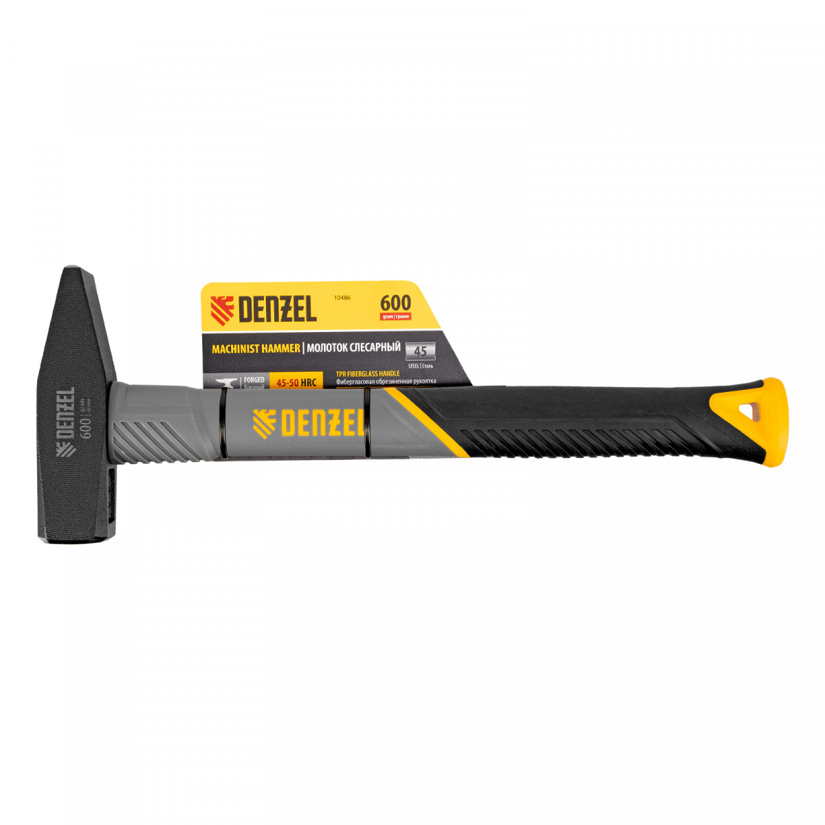 Молоток слесарный, 600 г, кованый, фибергласовая рукоятка c TPR покрытием Denzel