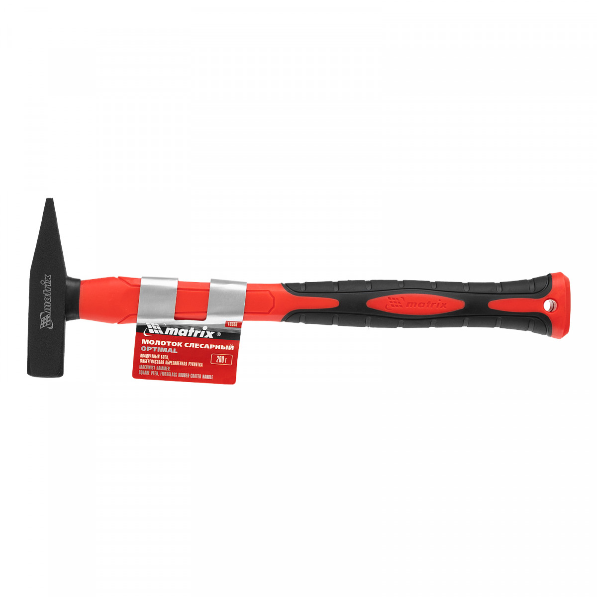 Молоток слесарный optimal, 200 г, фибергласовая обрезиненная рукоятка, квадратный боек Matrix