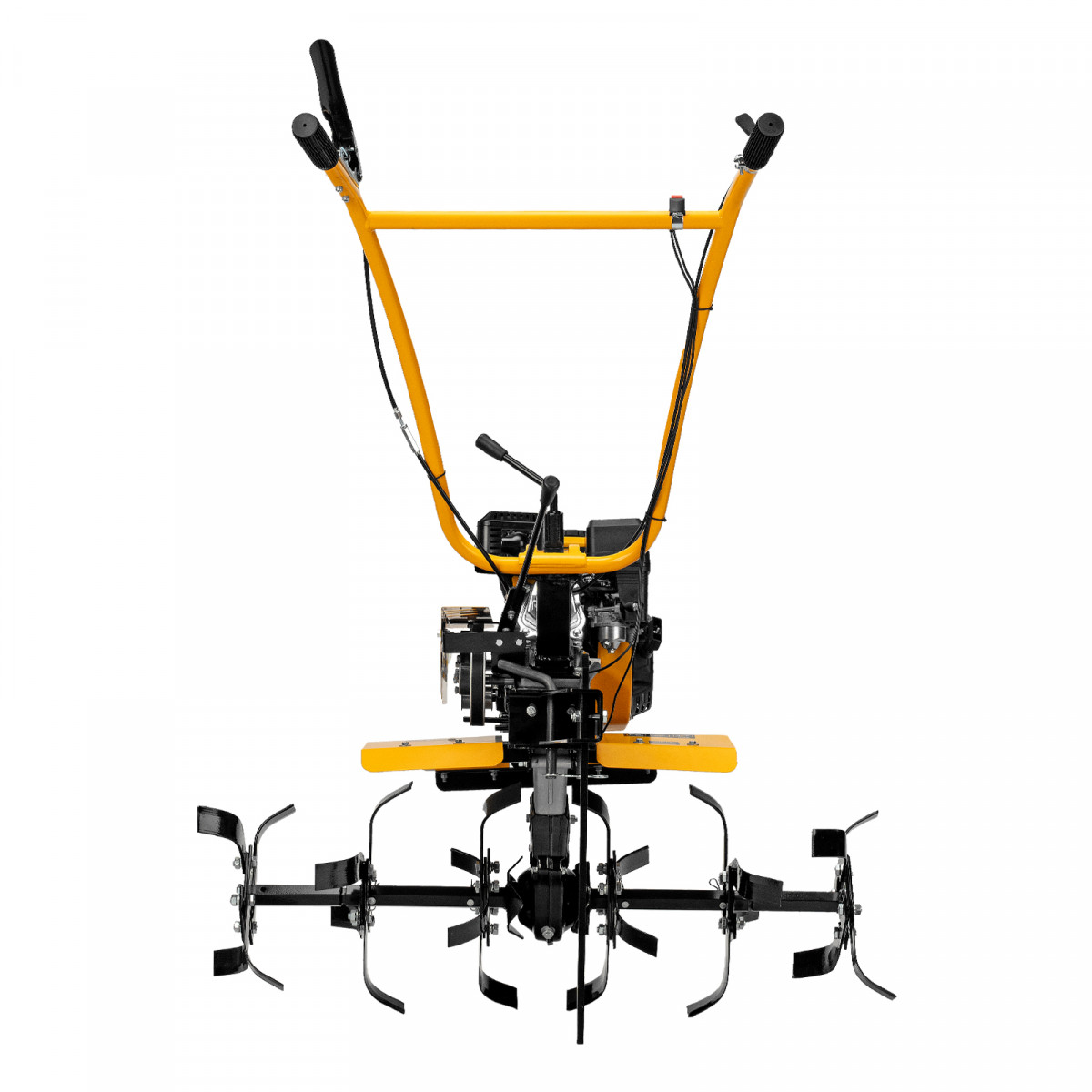- Удобная работа — основные элементы управления расположены на рукоятках, для включения сцепления и регулировки оборотов двигателя не нужно наклоняться.