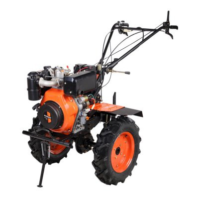 Мощный дизельный мотокультиватор с двигателем 9 л.с. и с рекордной шириной захвата укомплектован и фрезами, и пневмоколесами. Мотокультиватор оборудован валом отбора мощности дисковым сцеплением в масляной ванне, а шестерёнчатый редуктор способен выдержать самые продолжительные нагрузки. Отдельно можете приобрести и установить роторную косилку, тележку, плуг, окучник, картофелевыкапыватель.