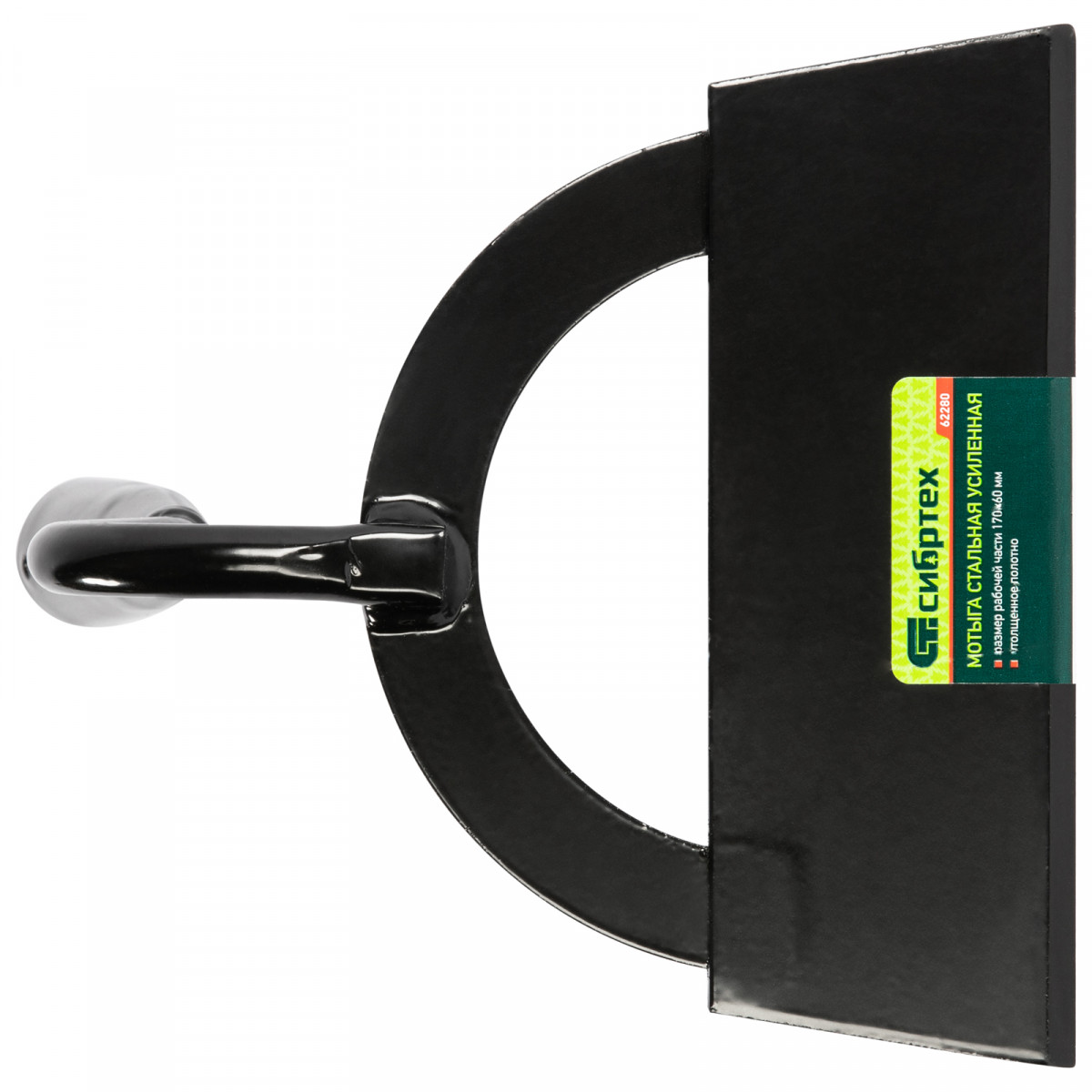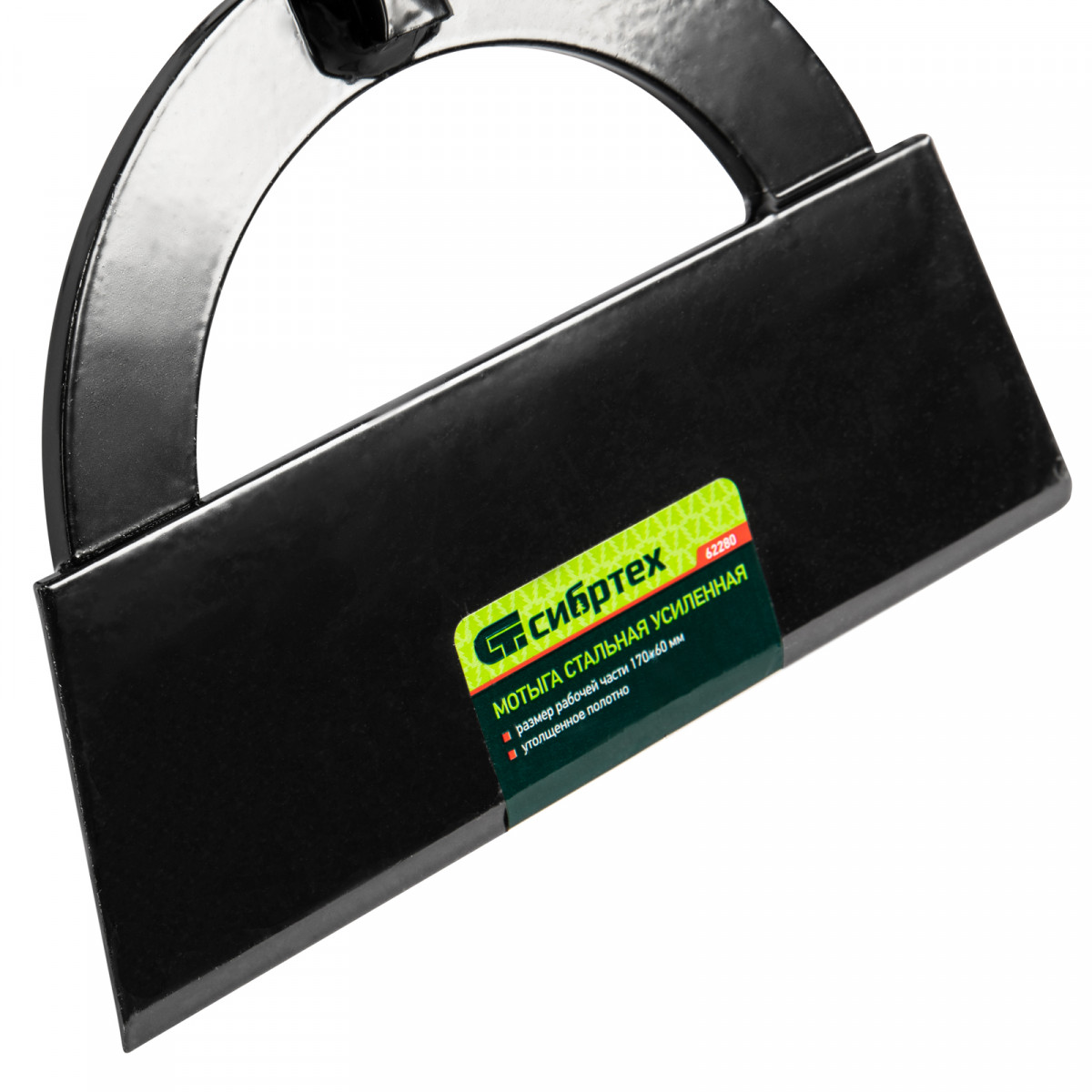 Усиленная стальная мотыга Сибртех 62280 с рабочей частью размером 170 х 60 мм, без черенка, — инструмент для работы в саду и на огороде. Ее используют для рыхления почвы, удаления сорняков, окучивания растений. Полотно толщиной 2,5 мм придает особую прочность инструменту. Мотыга совместима с черенком диаметром 30 мм (приобретается отдельно).