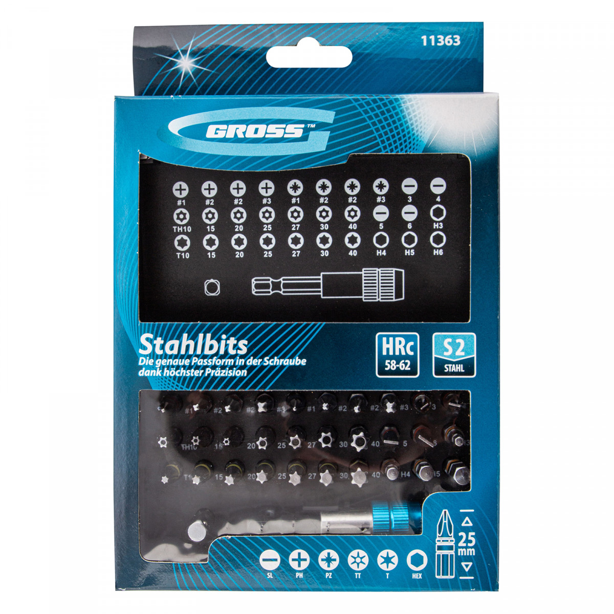 Набор бит, магнитный адаптер, сталь S2, пластиковый кейс, 32 предмета Gross