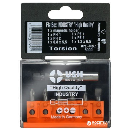 Набор бит USH FlatBox 7 шт Ph1, Ph2, Pz1, Pz2, Sl.0.8*5.5, Sl.1.2*6.5, магнитный держатель