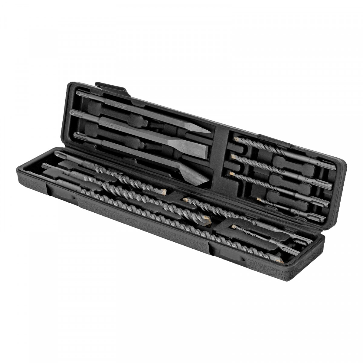 Набор Matrix 71097 включает 9 буров по бетону размером 5-6 х 110 мм, 8-10-12 х 160 мм, 14-16 х 210 мм, 18 х 300 мм, 20 х 450 мм и 3 зубила, которые используются в качестве оснастки на перфораторах с патронами SDS PLUS. Набор предназначен для сверления отверстий в бетоне, кирпиче и камне, а также для удаления старого слоя штукатурки, снятия облицовочной плитки, штробления и демонтажа армированного бетона. Подходит для работы на строительной площадке, пригодится ремонтным бригадам и профессиональным мастерам, также будет полезен в быту.