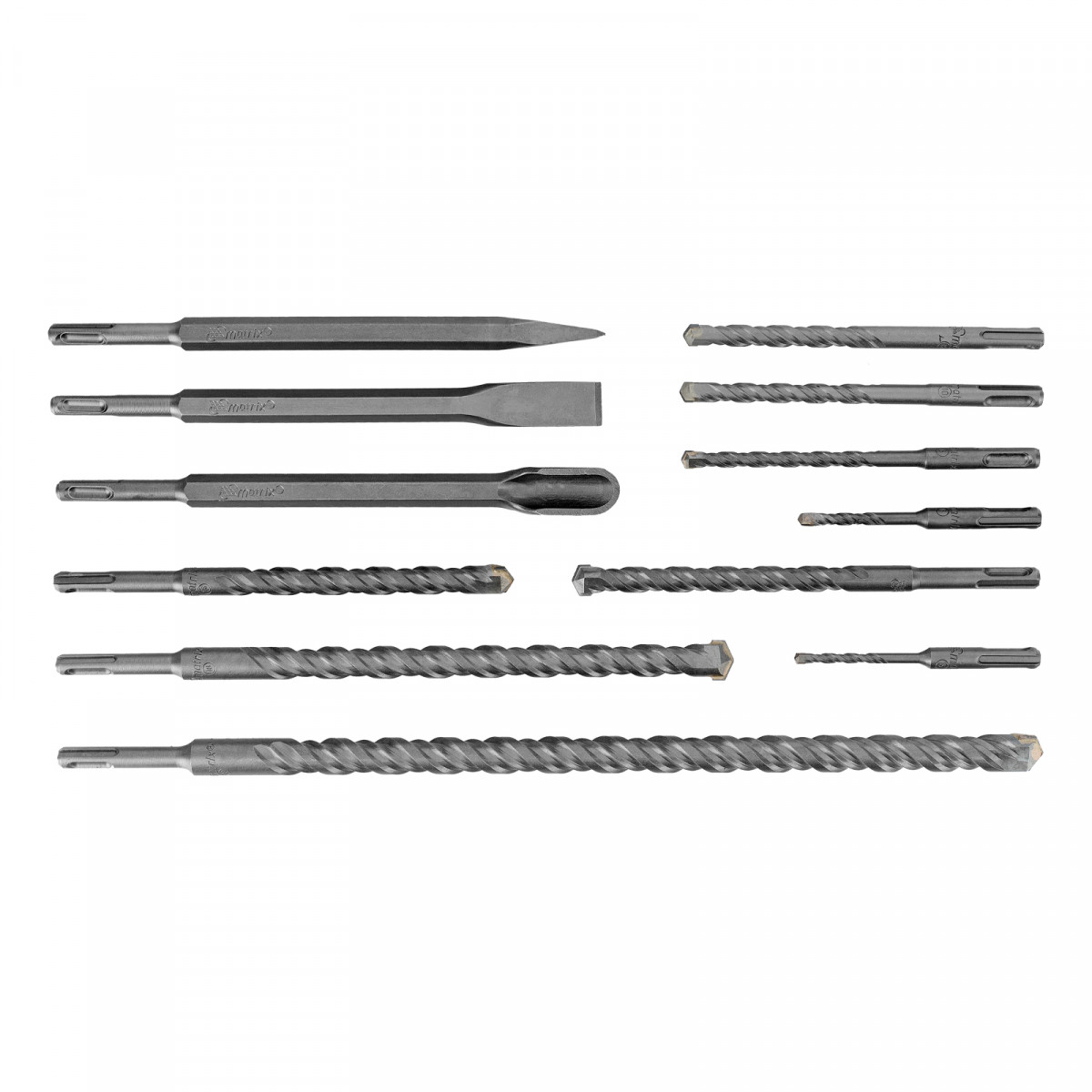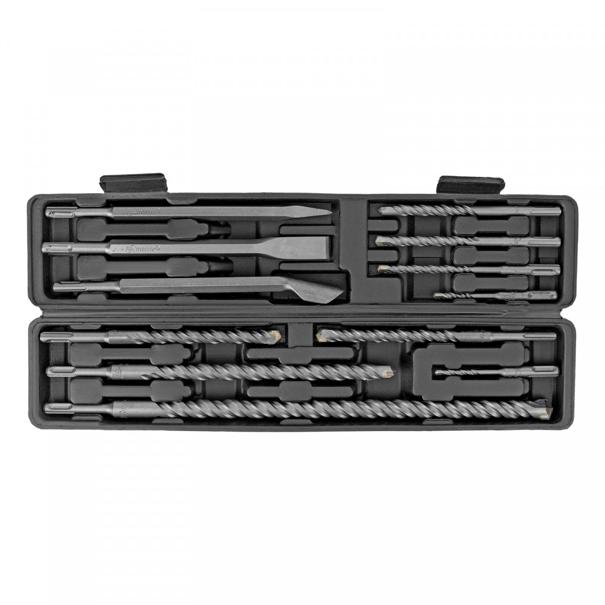 Набор буров по бетону, 5-6 х 110, 8-10-12 х 160, 14-16 х 210, 18 х 300, 20 х 450 мм, зубила, SDS Plus Matrix