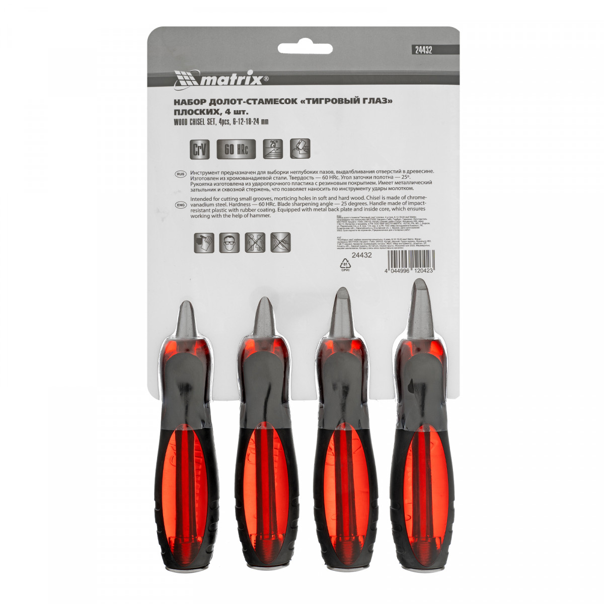 Набор долот-стамесок плоских "Тигровый глаз", 4 шт, 6-12-18-24 мм Matrix