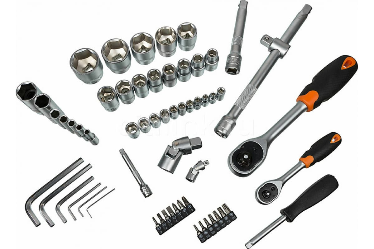 Набор инструментов 1/2, 1/4 дюйма CrV, пластиковый кейс 76 предметов Вихрь 73/6/7/4 включает в себя обширный комплект снаряжения, необходимого для слесарных работ. Большое количество торцевых головок и вставок охватывает наиболее популярные типоразмеры крепежа.