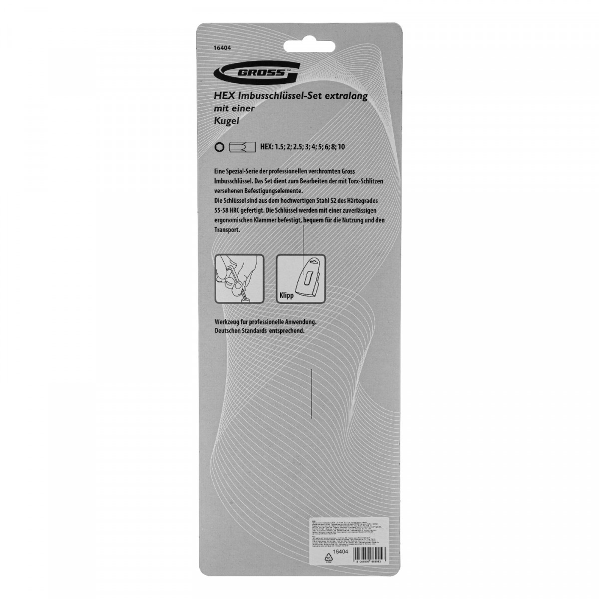 Набор ключей имбусовых HEX, 1.5-10 мм, S2, 9 шт, экстра-длинные с шаром, сатинированные Gross