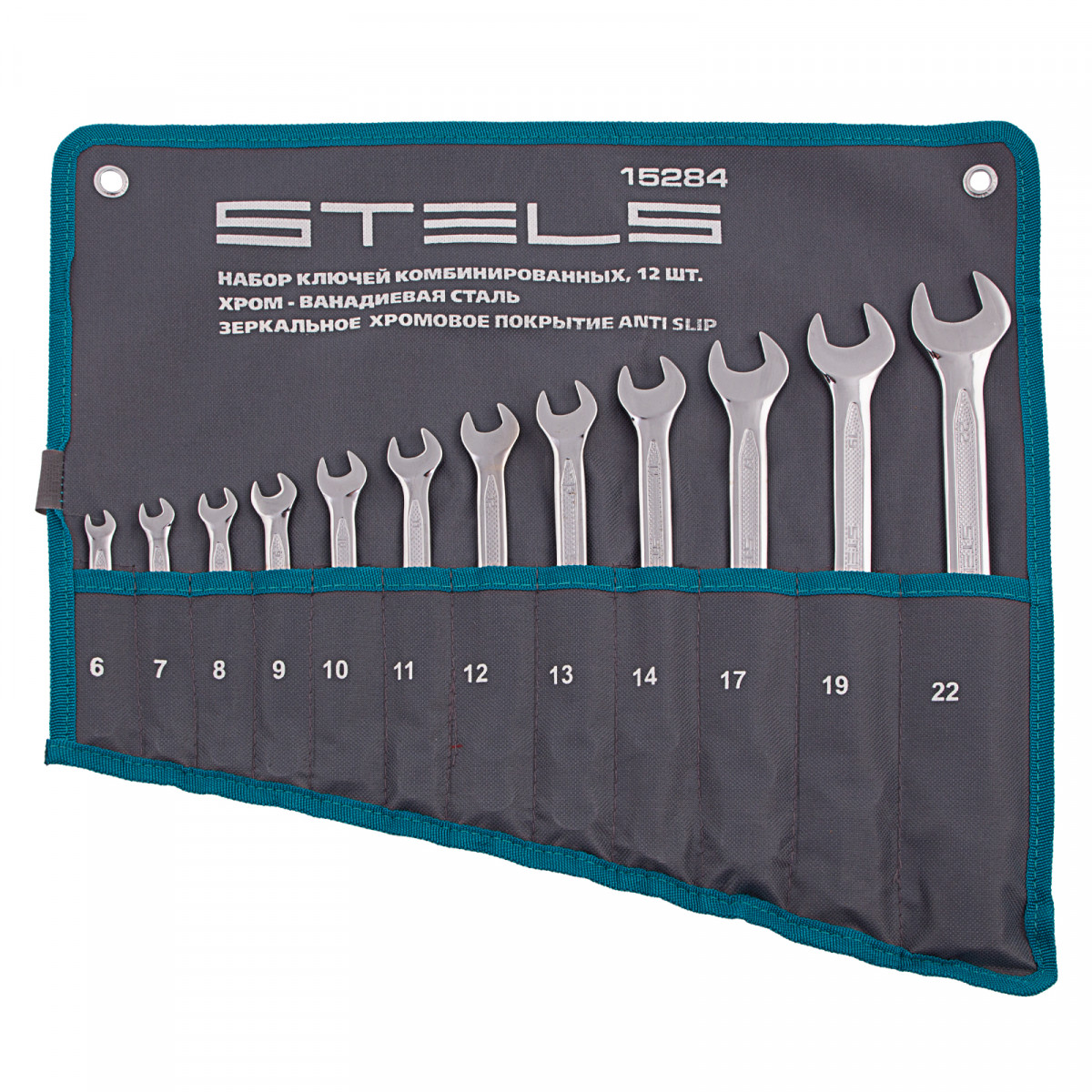 Набор ключей комбинированных 12 шт, 6-22 мм, антислип Stels