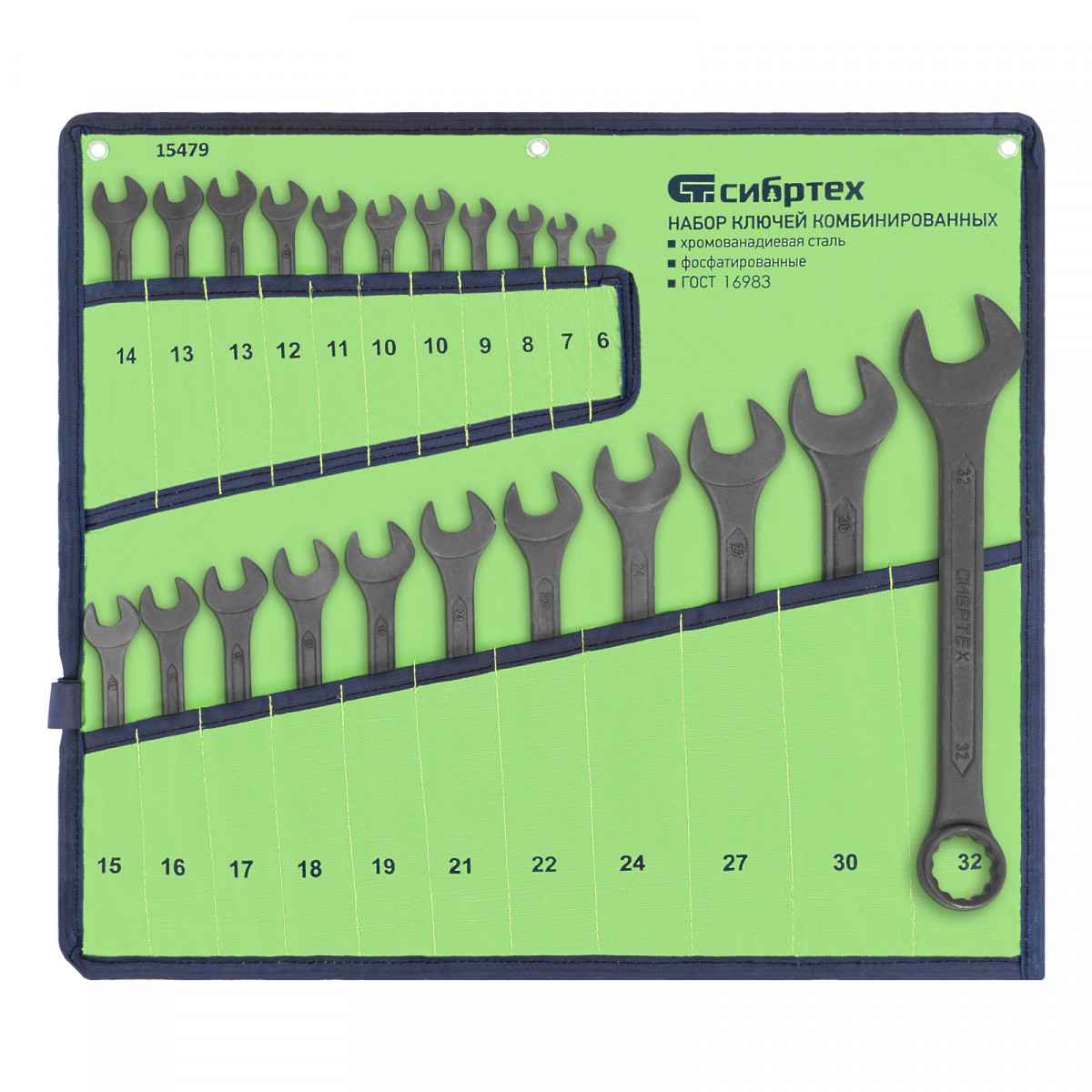 Набор ключей комбинированных, 6 - 32 мм, 22 шт., CrV, фосфатированные Сибртех
