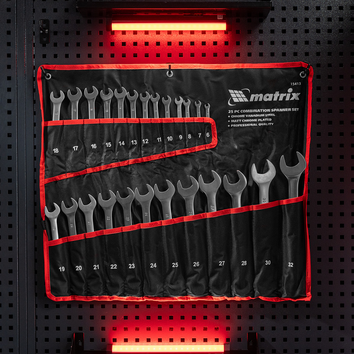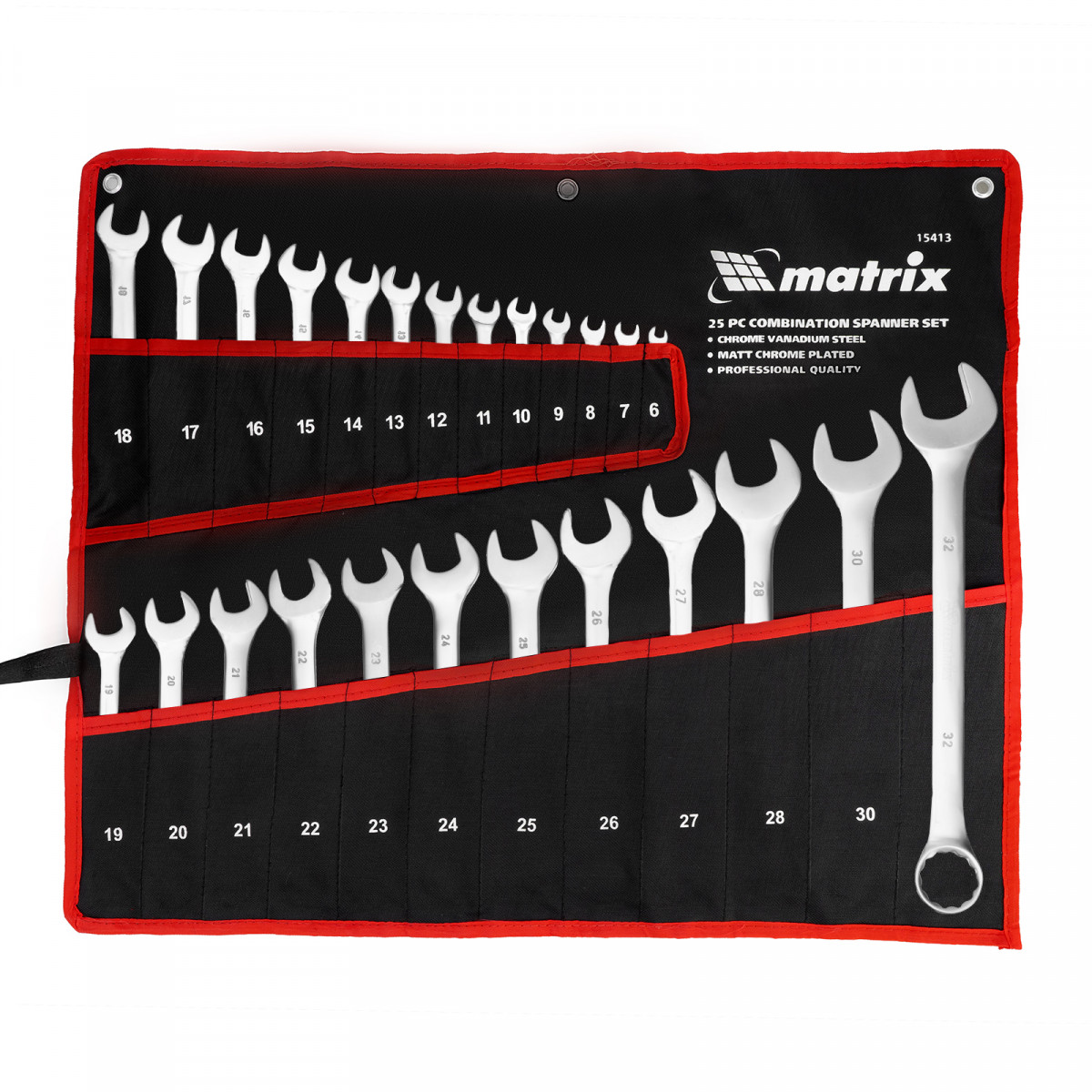 Набор ключей комбинированных, 6-32 мм, 25 шт, CrV, матовый хром Matrix
