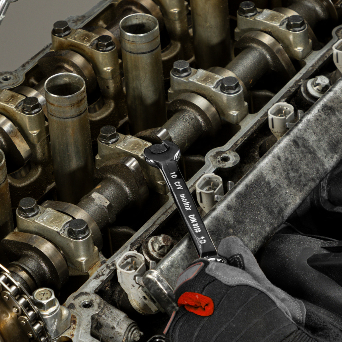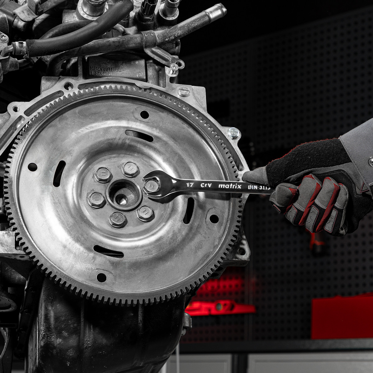 • Аккуратная работа — накидные части с 12-гранным профилем охватывают всю поверхность крепежа, уменьшая риск деформации его граней.