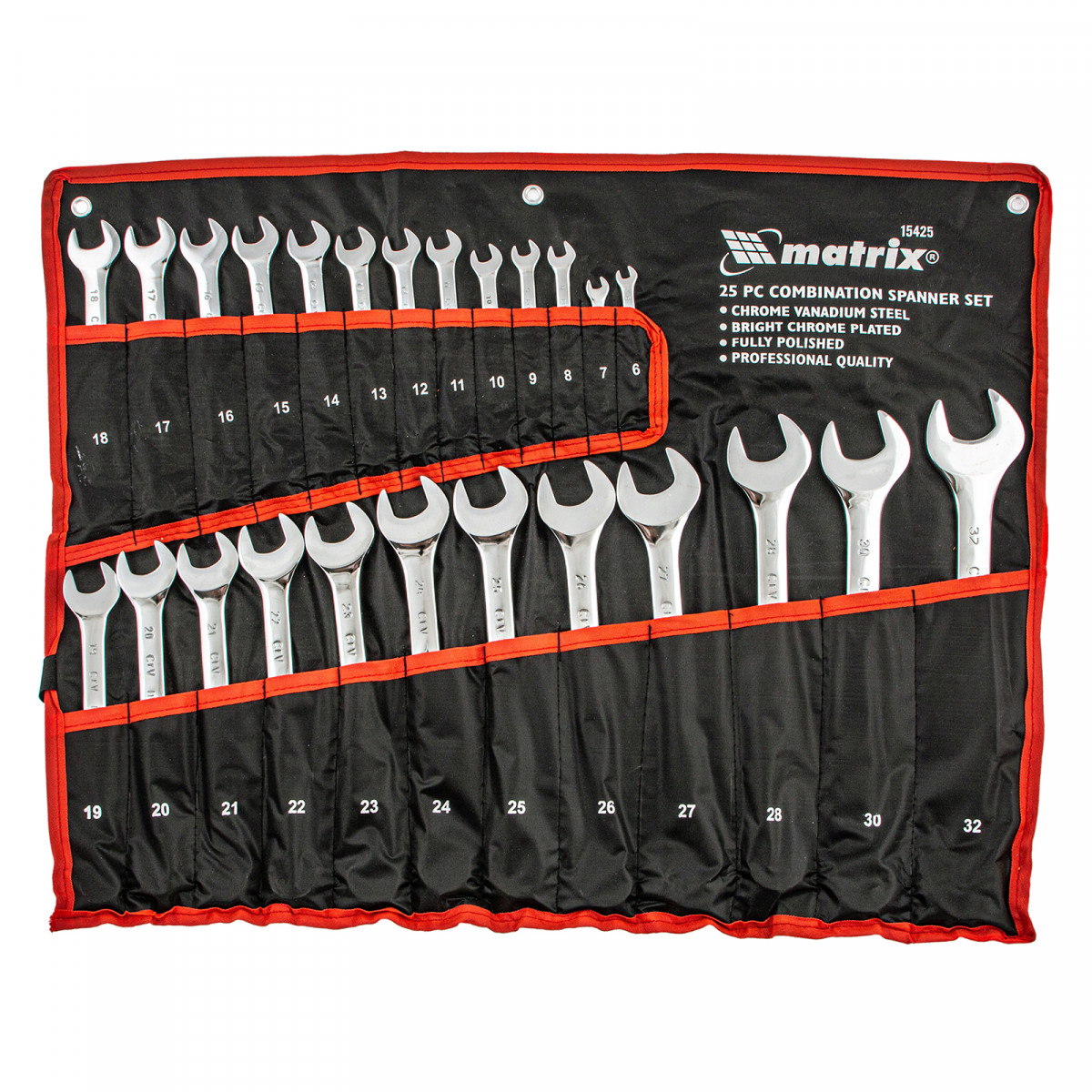 Набор ключей комбинированных, 6-32 мм, 25 шт, CrV, полированный хром Matrix