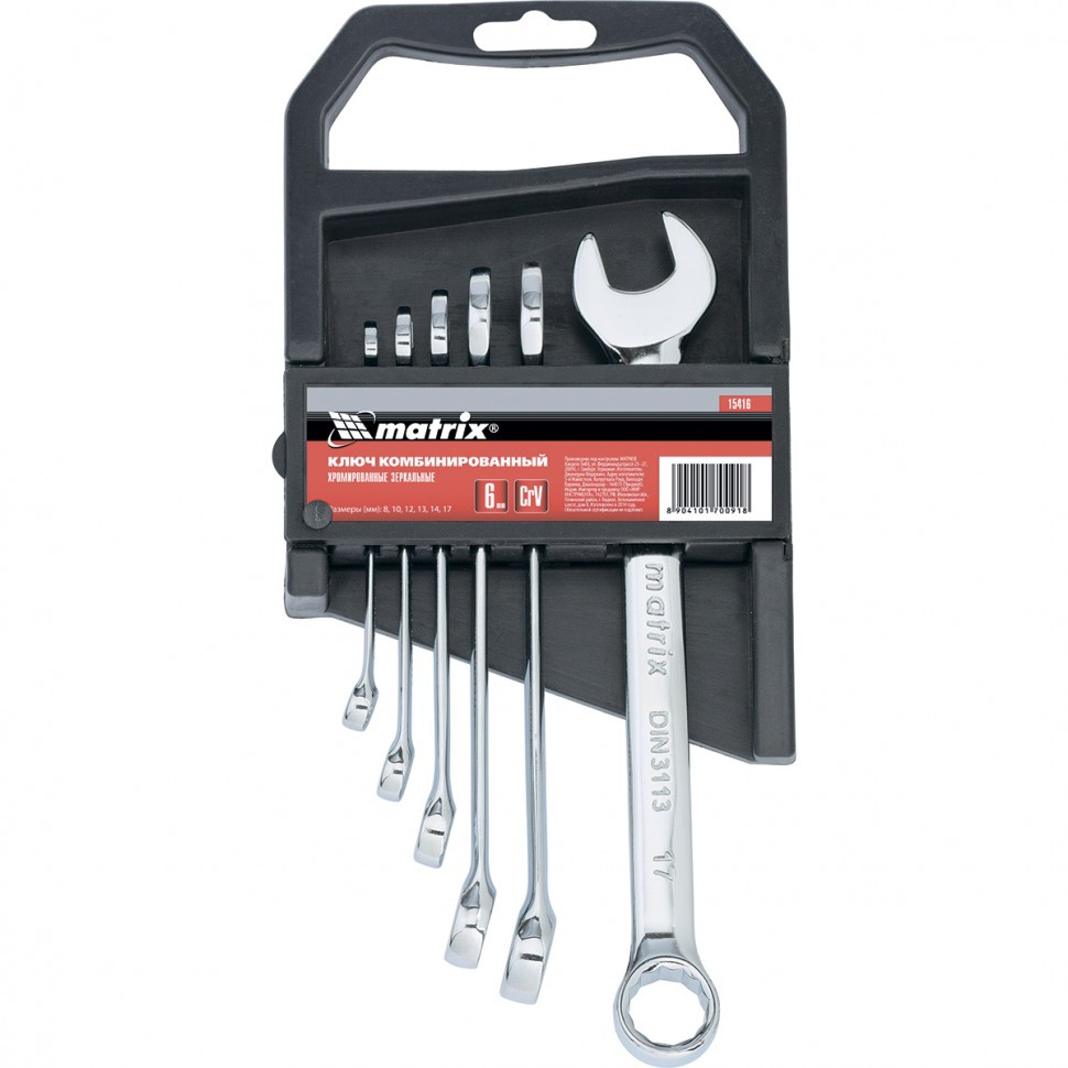 Набор ключей комбинированных 8-17 мм CR-V (6 шт.) полированный хром MATRIX